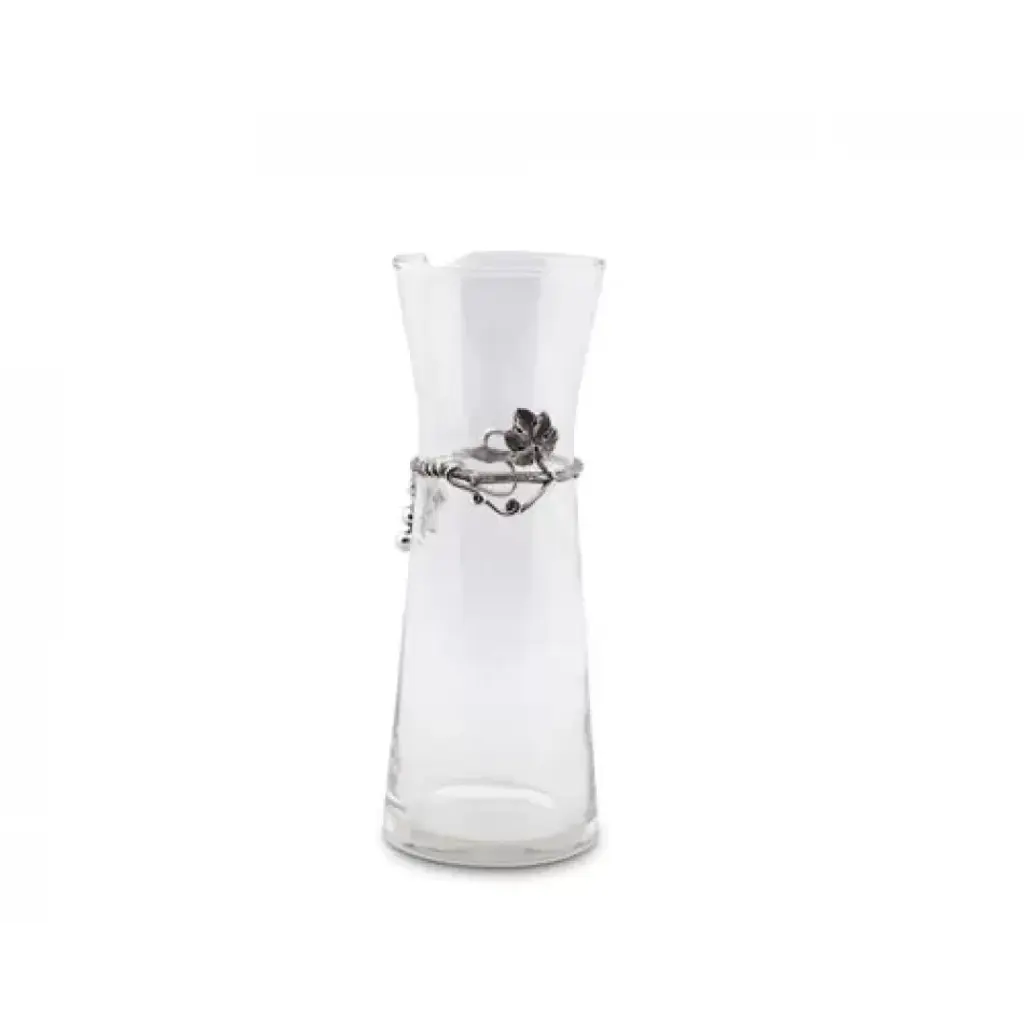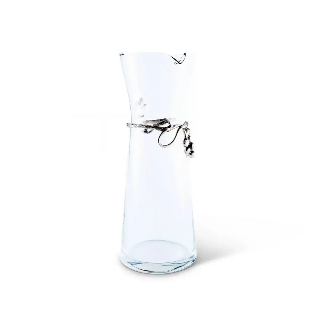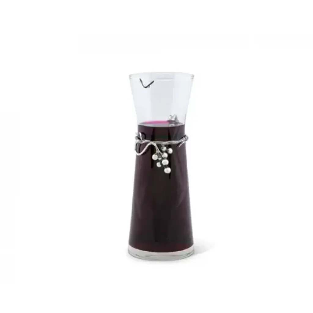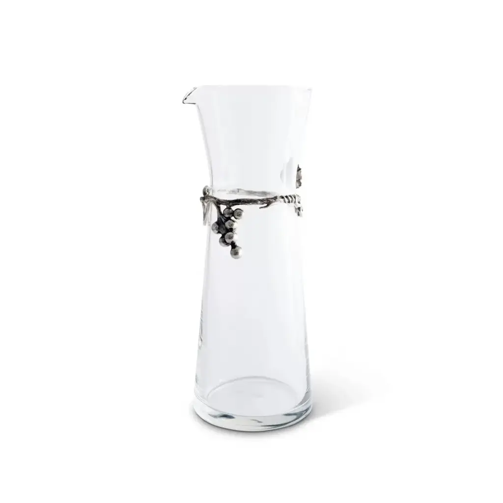 Complement your favorite wine with the sophisticated design of this Vineyard Carafe from Vagabond House. A beautiful vine wraps around the neck of this piece as additional flourishes branch off its line to support bundles of grapes and leaves. Crafted in pure, luxury pewter, the design acts as a necklace of sorts for this elegant carafe. The cylindrical glass opens into a wider mouth, which features a V-shaped rim on one side for easy pouring. Vagabond House is a family-owned American company specializing in fine pewter tableware, servingware and giftware. Largely inspired by nature, their exclusive products are designed to be unique, functional heirlooms for those who seek to express tradition and style in both family and formal entertaining.
