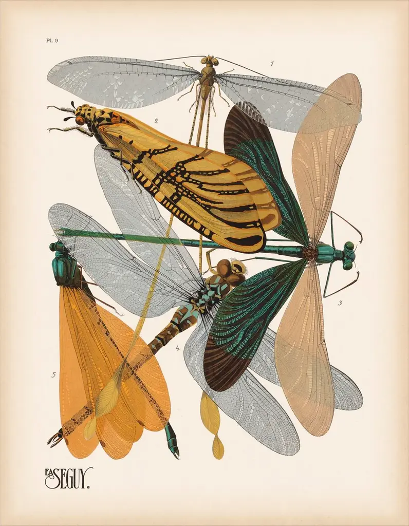 With an appreciation for the fragility and intricacy of a dragonfly, these two blue species are displayed on a vintage title page.
