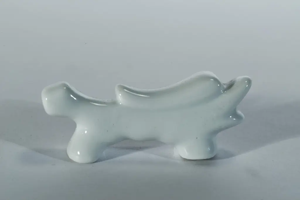 Vintage porcelain knife or chopstick rests feature streamlined abstract dragon shape with short legs and long tail and mane, decorated in monochromatic glossy white glaze. The elongated dragon body forms the knife rest itself; the traditional Blanc de Chine palette adds charm and elegance to traditional Chinoiserie style pieces.The playful and decorative set will make a great gift to a porcelain collector or design enthusiast and will complement various tablescapes, from Traditional to Mid Century Modern, Eclectic, Transitional, Grand Millennial, Glam, Maximalist, Japandi, Collected, or Contemporary.We are offering 2 sets of 6 knife rests at the time of listing.Provenance: the set was acquired from the estate of a prominent art and antique collector in Western New York state.