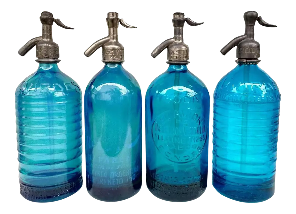 Set of 5 vintage Seltzer Bottles. Fully restored and sold as decorative.