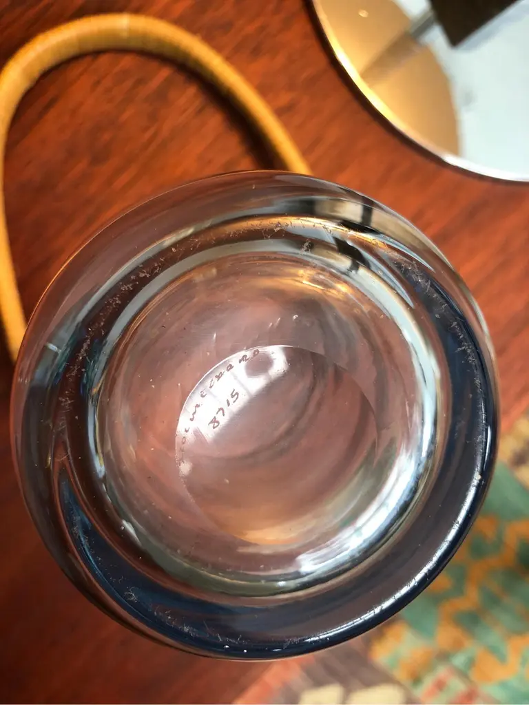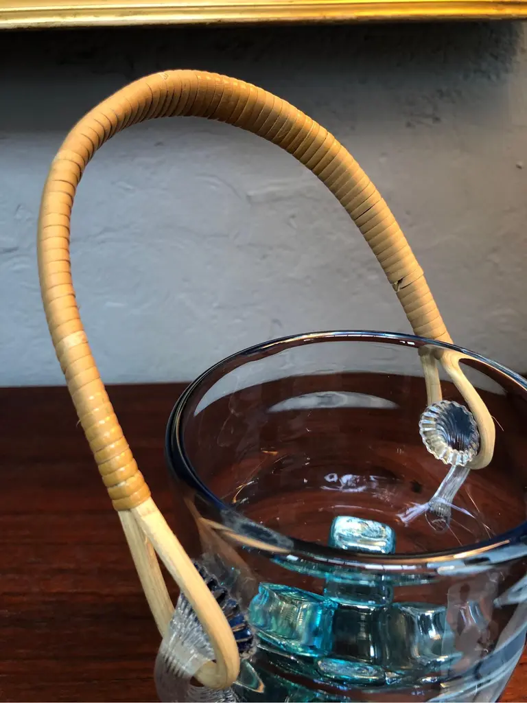 Vintage glass ice bucket by Per Lükten for Holmegaard glass works model 8715. Per Lütken 1916 - 1998 was the unsurpassed master of Danish glass design and one of Holmegaard's most advanced glassblowers. He worked at Holmegaards Glasværk from 1942 until his death in 1998 and has breathed life into more than 3000 glass designs.
