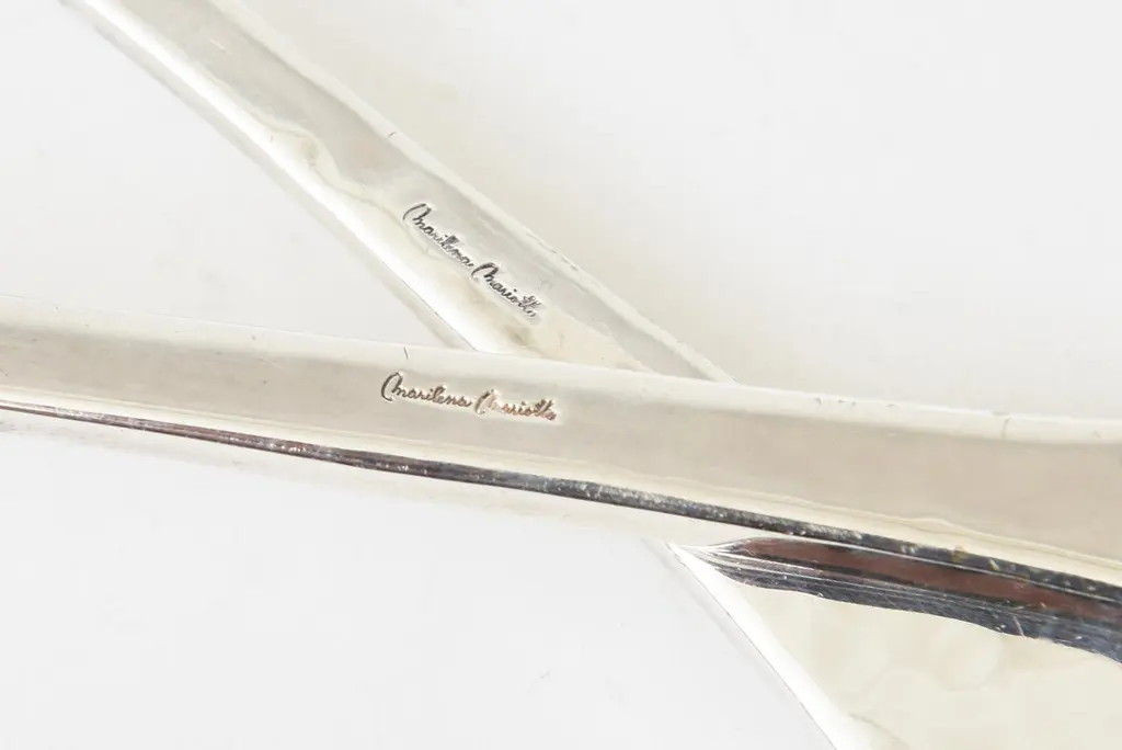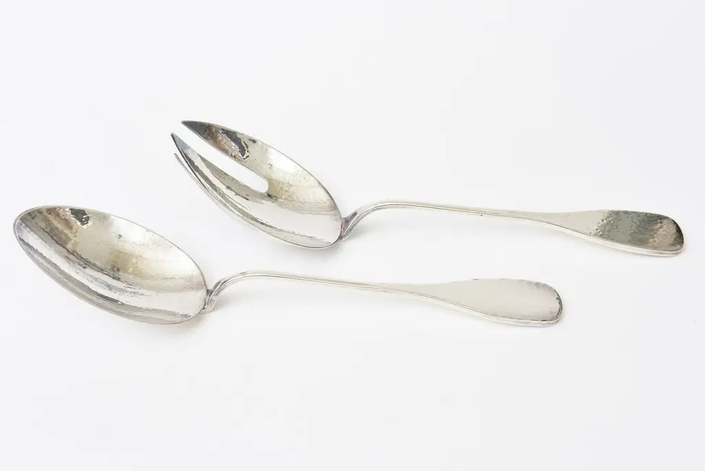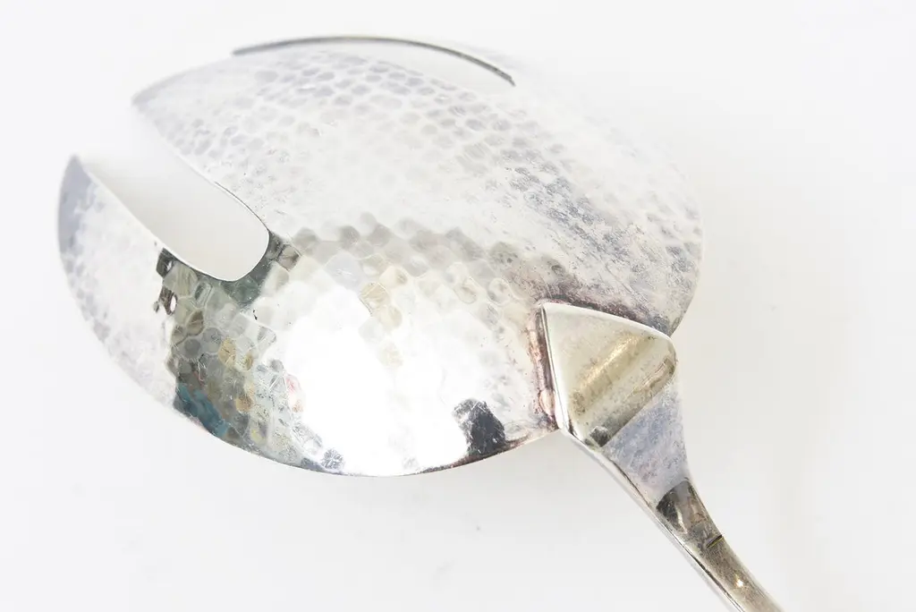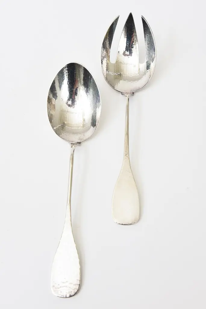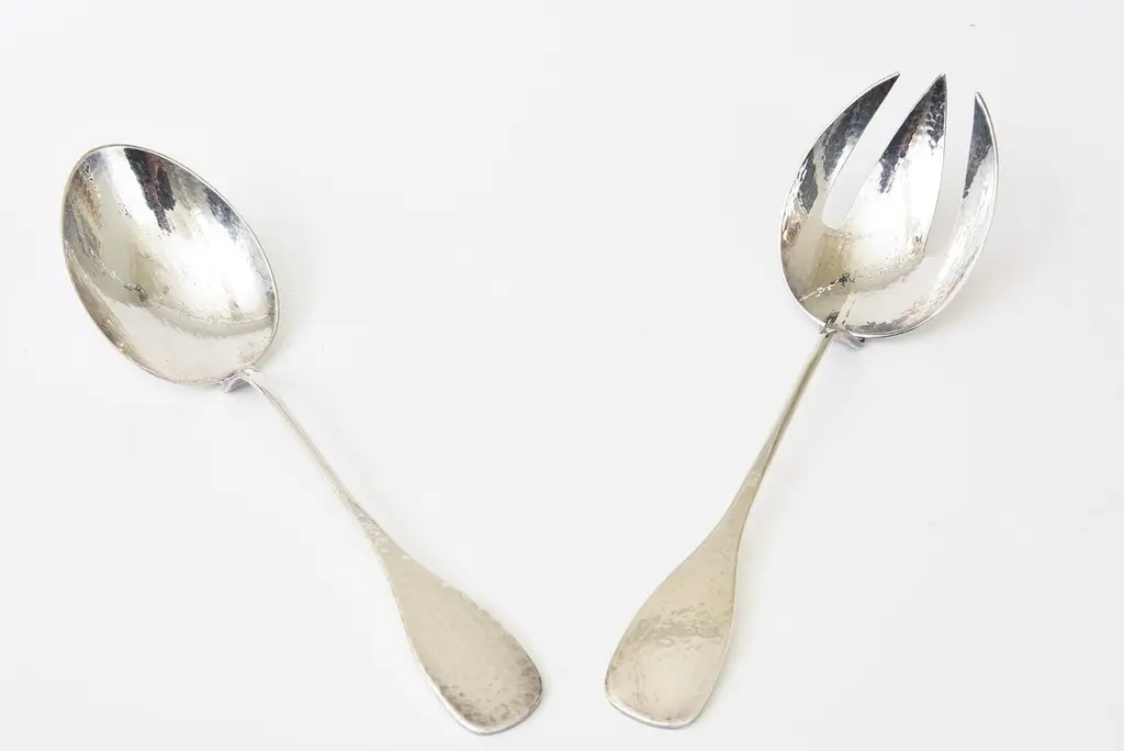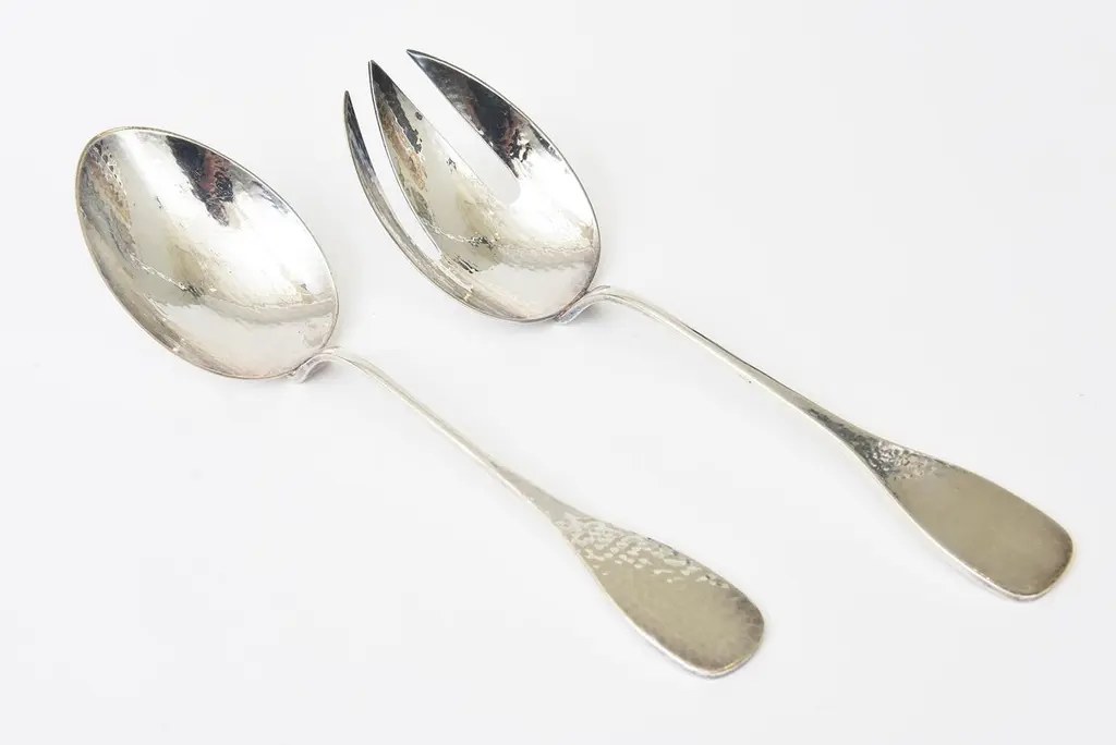 Vintage Signed Monumental Hand Hammered Silver-Plate Salad Servers Or Serving
