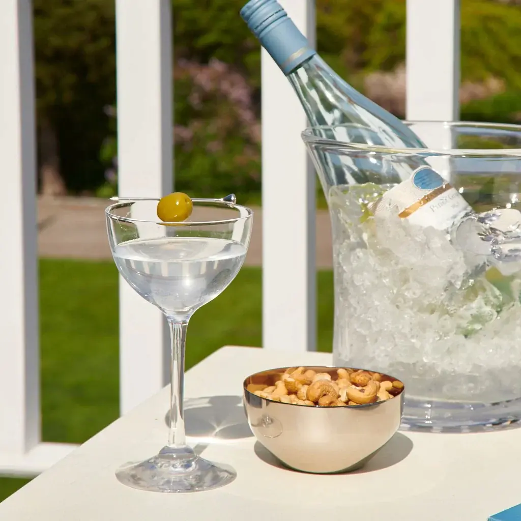 A tribute to a classic cocktail era, the Vintner Nick and Nora Glass from Simon Pearce is a sophisticated vessel for your favorite spirits. Made in the USA, this beautiful glass is handcrafted using the brand’s signature techniques. Inspired by the storied barware silhouette of Nick and Nora Charles, this version features a slightly upsized bowl for ample mixing and sipping. A fusion of classic inspiration and artisanal skill, it’s a stunning and authentic piece for the modern home bar. Highlights: