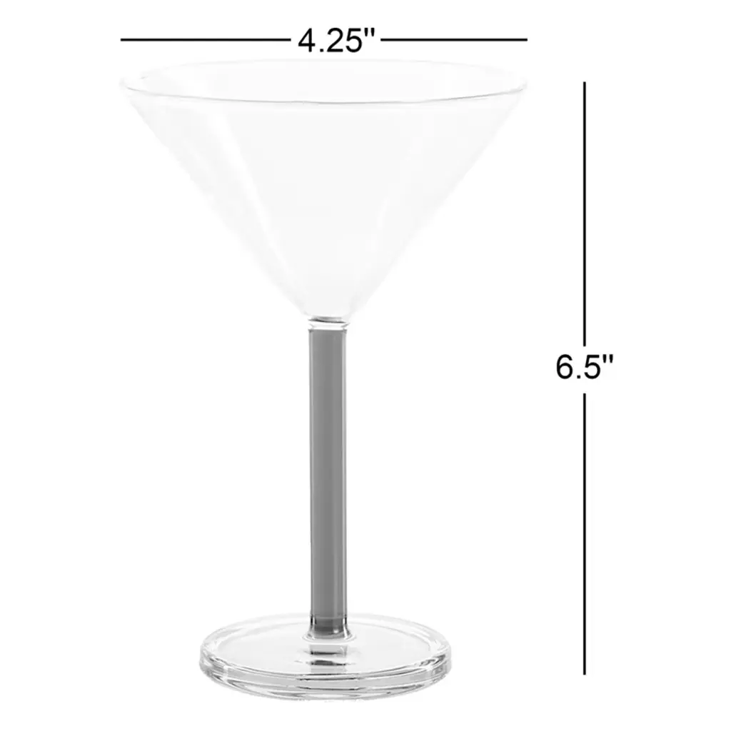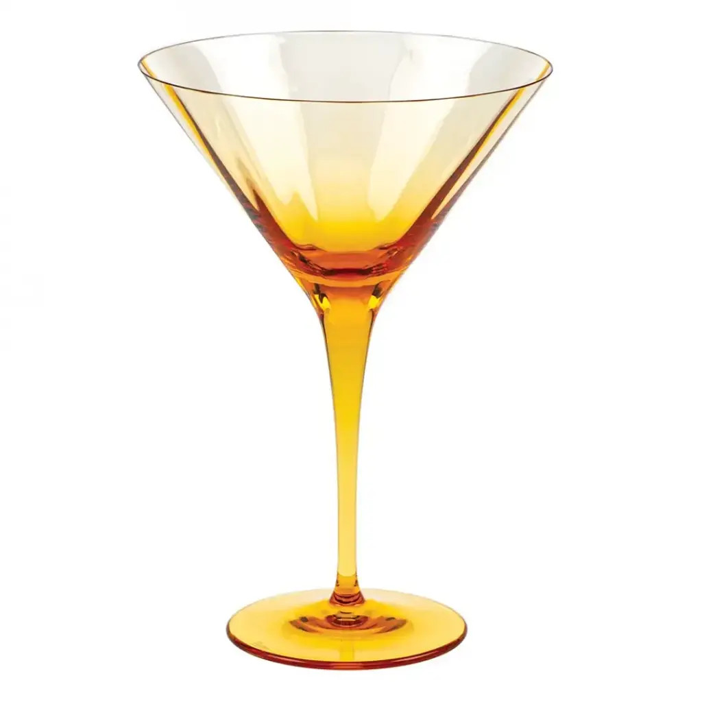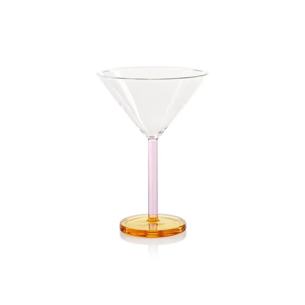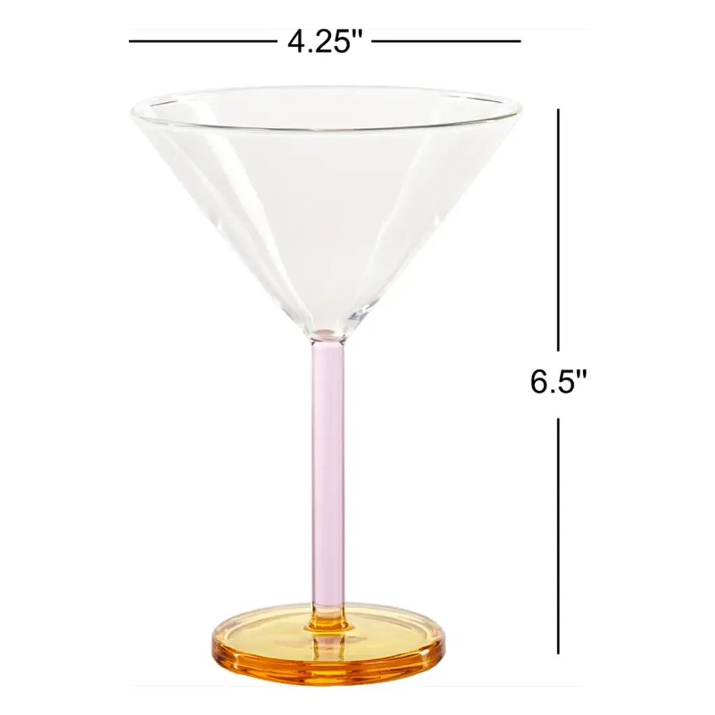 This set includes four martini glasses with an elegant design, perfect for enhancing the drinking experience of your mixed drinks. Crafted from high-quality glass, the glasses feature a clear cup and colorful base that add visual appeal to its contemporary style. The lovely stemware adds a fun touch that complements both formal and casual settings.