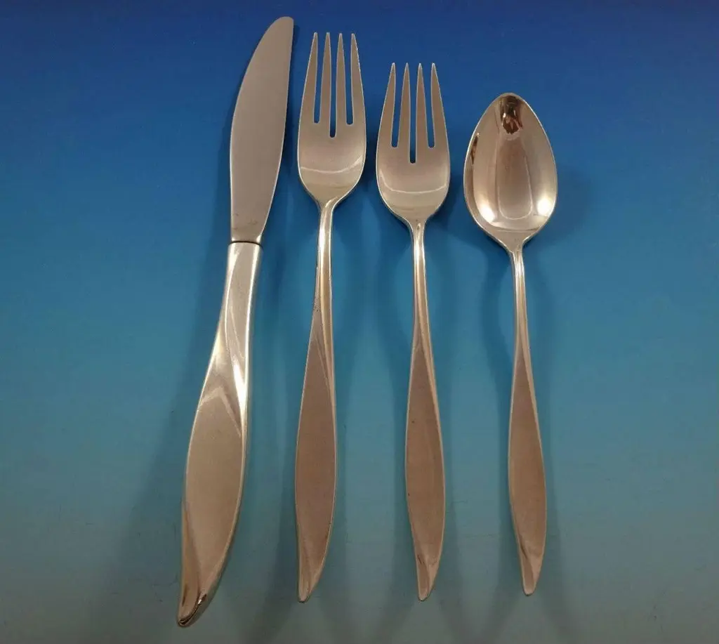 Vivant By Oneida Sterling Silver Flatware Set Service 66 Pieces Modernism Sleek