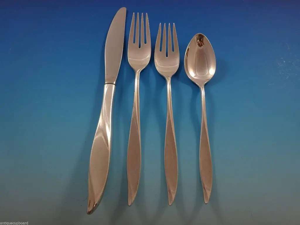 Vivant By Oneida Sterling Silver Flatware Set Service Mid-Century Modern 34 Pcs