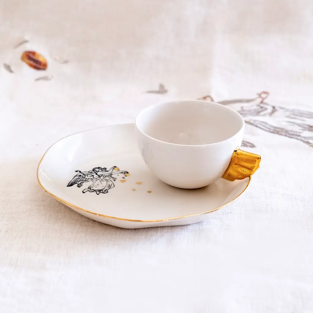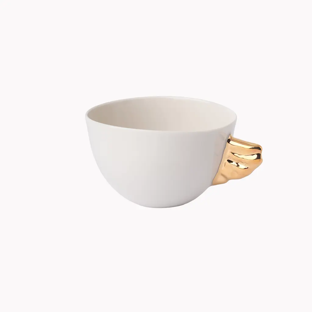 With their golden wing detail, the Volans Cups carry timeless elegance and powerful energy—symbolizing protection, guidance, and forward motion.Part of a collection where history, nature, and mythology merge, these cups are more than just functional objects. Each gold-accented line is meticulously hand-applied by our artisans, reflecting the universal harmony in every detail.This set includes 4 cups, each handcrafted using fine Limoges porcelain clay and decorated with 24-carat gold glaze. Whether enjoyed with your favorite coffee or displayed as decorative pieces, they add both beauty and meaning to your table.Available in four colors: natural, red, green, and dark blue.