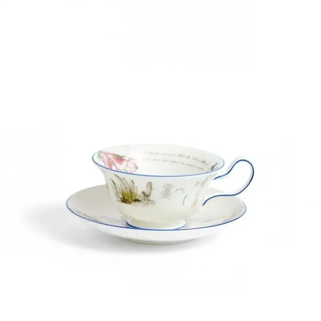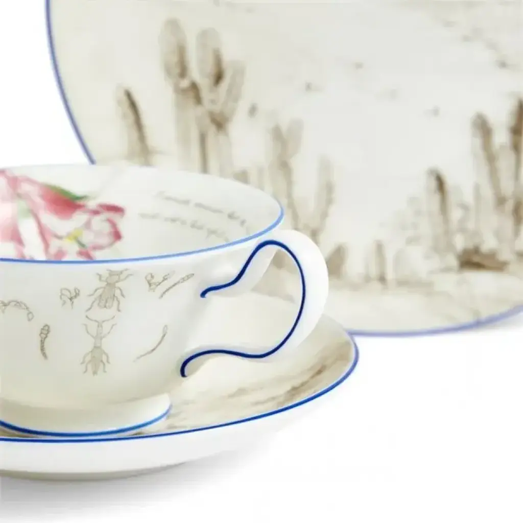 Experience the majesty of Chile with this Voyage of the Beagle Chile Plate set. Crafted from fine bone china, the plate set showcases Martens' sketches of Chilean landscapes, bell flowers, insects, and cacti. The teacup features Josiah Wedgwood II's handwriting from the letter he wrote to Charles Darwin. A deep blue lining completes this captivating set. Plate - L-21.00cm, W-21.00cm, H-1.90cm Teacup - L-13.50cm, W-11.00cm, H-6.00cm Saucer- L-14.80cm, W-14.80cm, H-2.60cm