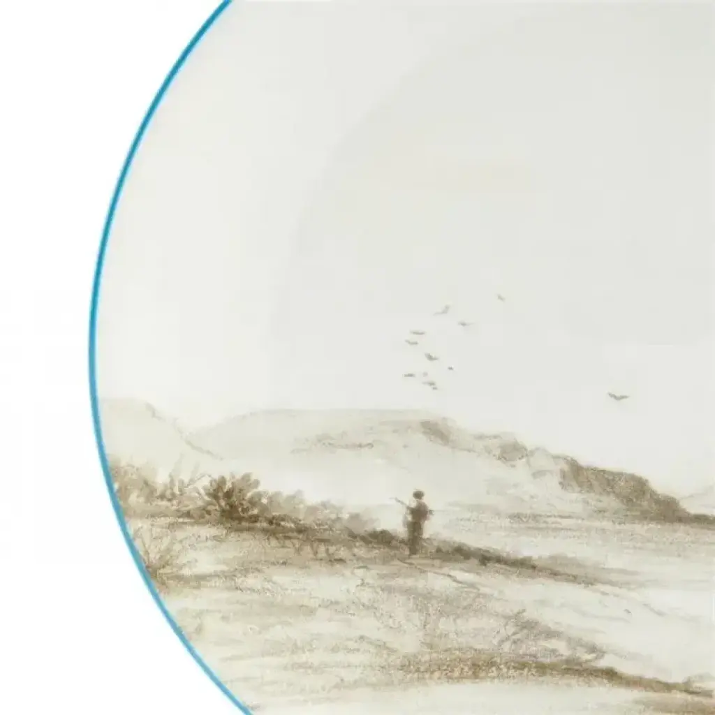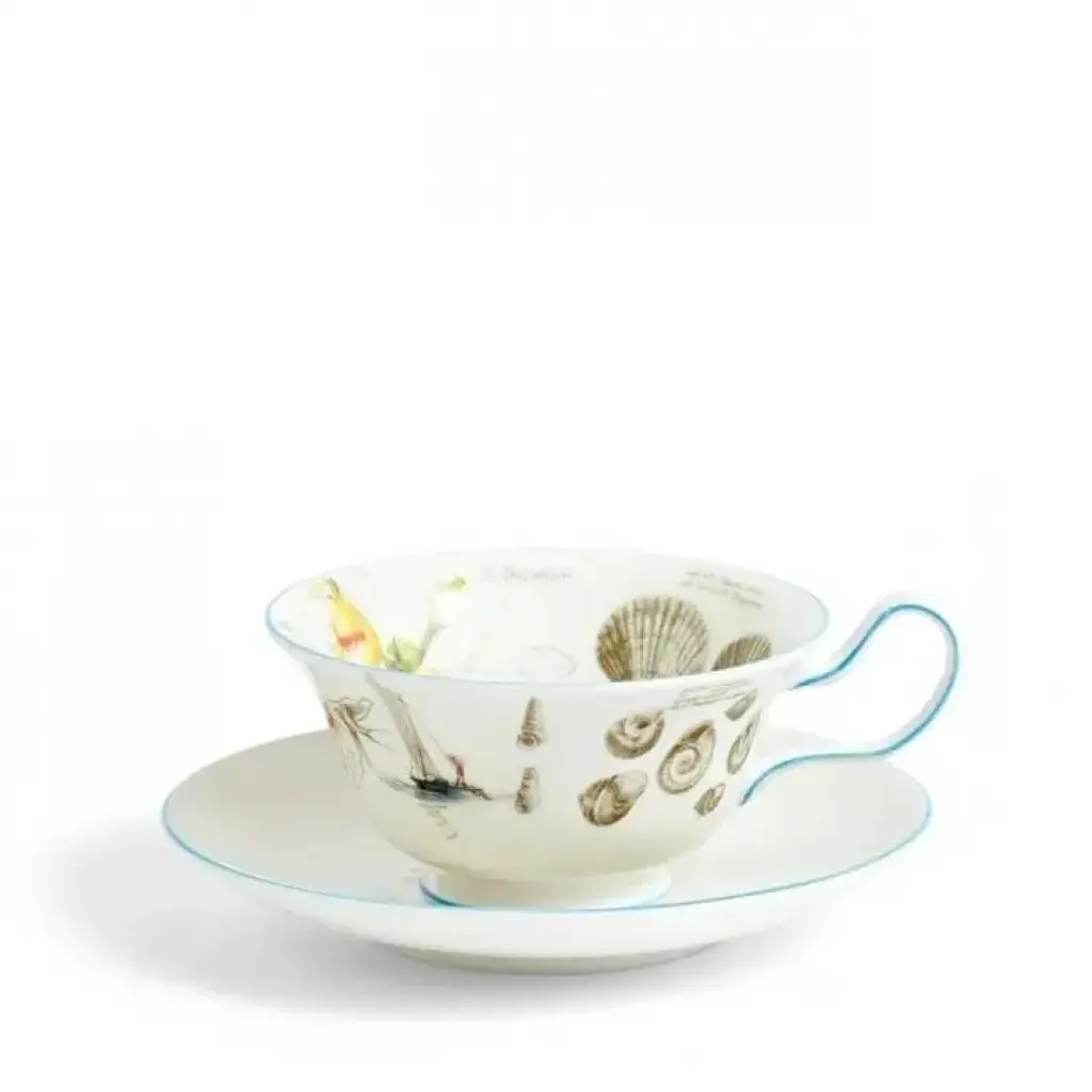 Embark on a journey to Patagonia with this fine bone china plate set from the Voyage of the Beagle collection. The plate set features Martens' Patagonian landscapes, Darwin's slipper orchid, and the Rhea—a flightless bird similar to the ostrich. The rich turquoise lining completes the set, making it a perfect addition to your dinnerware. Plate - L-21.00cm, W-21.00cm, H-1.90cm Teacup - L-13.50cm, W-11.00cm, H-6.00cm Saucer- L-14.80cm, W-14.80cm, H-2.60cm