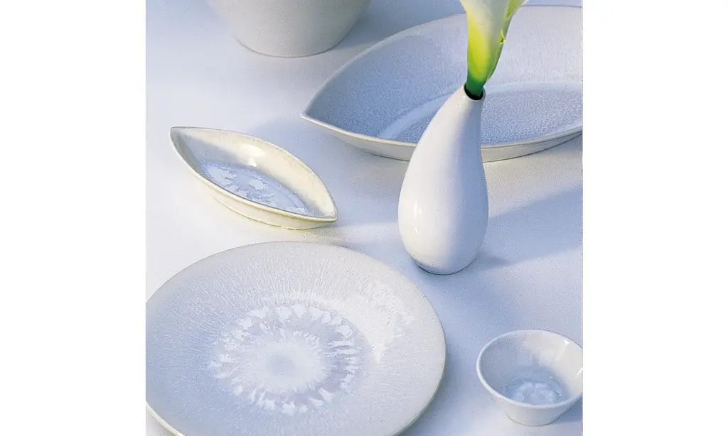 Created for elegant, classic tables, Vuelta combines delicate, translucent colors with round shapes. This refined and contemporary collection features a crackled texture and glass-like glaze and is as durable as porcelain. The non-porous surface will not stain or scratch.