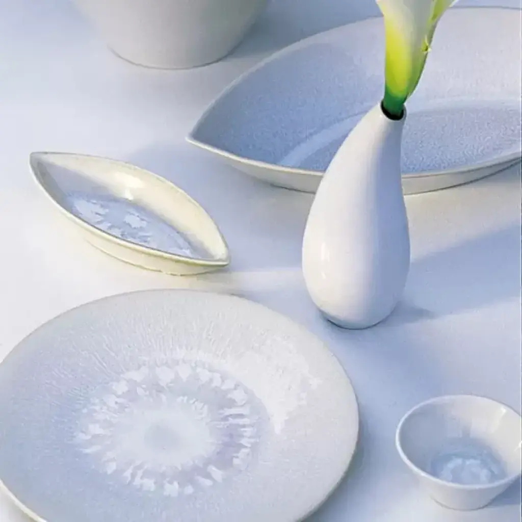 Created for elegant, classic tables, Vuelta combines delicate, translucent colors with round shapes. The shape of the plate values the perfect round center. This refined and contemporary collection features a crackled texture and glass-like glaze and is as durable as porcelain. The non-porous surface will not stain or scratch. Made in France, this dinnerware graces the tables of Michelin Star restaurants around the world yet it is meant to be used daily in the home. It was specifically designed to be dishwasher and microwave safe. Jars creates environmentally friendly ceramic dinnerware and tableware in a range of stylish colors. Their products are handcrafted in the South of France from high quality, natural raw materials. Jars dinnerware is chip resistant and as durable as porcelain. Items are stain-resistant and microwave and dishwasher safe. In 1857, Pierre Jars founded the family company “Manufactures de Poterie Jars ” in the South of France. In 1900, the company received a grand prize at the Universal Exhibition. To this day, the company has remained true to the founder’s creative vision of turning objects of day-to-day living into works of art, while transforming the functional into the beautiful.