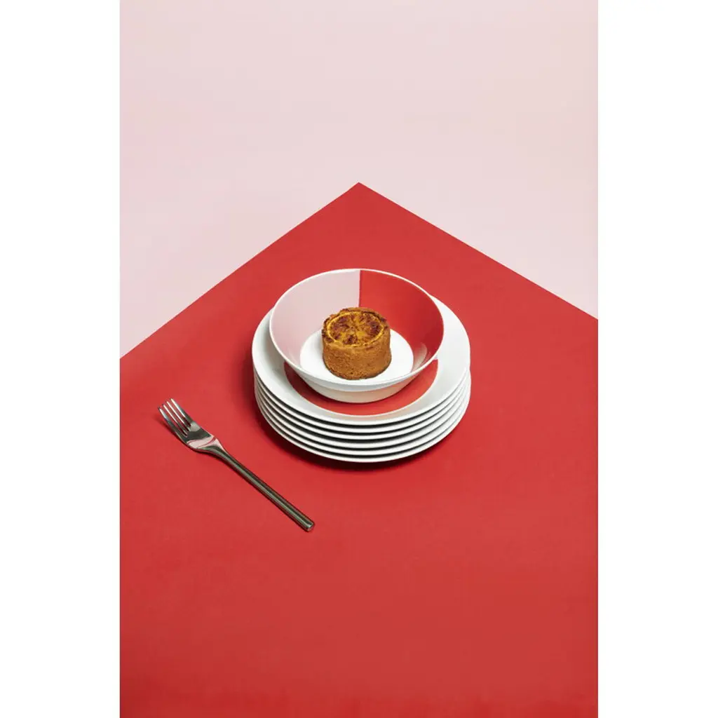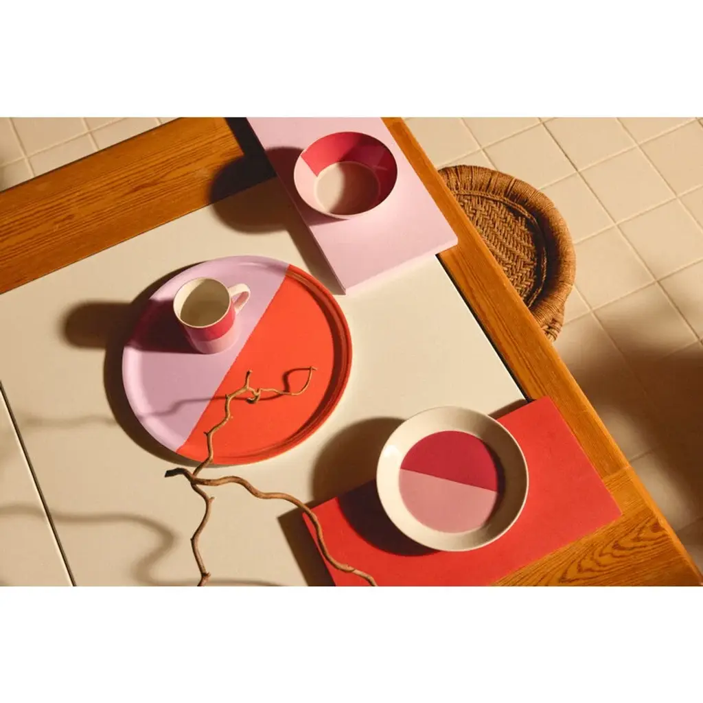 Arabia's Vuokko plate is decorated with the 2-väri – or "2 colors" – pattern designed by Vuokko Nurmesniemi in 1974. Featuring vertical stripes in fresh shades of pink and red, the design adds a cheerful burst of color to the table setting. With a diameter of 8.27 x 0 in (21 x cm, cm), the Vuokko plate is ideal for serving salads and starters, as a side plate or as a smaller dinner plate. The Arabia X Vuokko collection connects two pioneers of Finnish design: Vuokko Nurmesniemi, known for her bold textile and fashion prints, and Arabia, renowned for its clean-lined, timeless ceramics. The colorful collection features ceramic tableware, a tray, napkins and a unique glass vase – a revived design by Nurmesniemi from the 1950s.