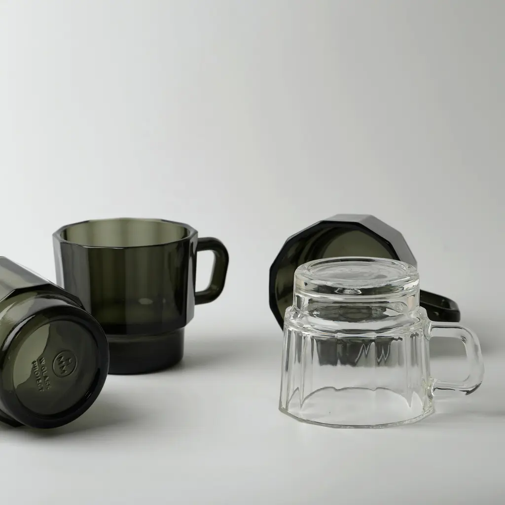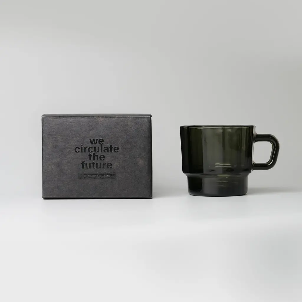 Inspired by the passage of time and the cycle of life, this recycled glass cup provides an elegant solution to energize your morning or relax with your daily tea making ritual. Simple and stylish, the HMM W Glass Black features twelve facets that reference the hours of a clock. The design also puts a focus on function. Apart from the tapered bottom that allows stacking, the glass features an angled exterior and a smooth, circular interior for easy cleaning. A heat-proof handle with a rounded shape for more comfort completes the design. Like the amber and clear color versions of this design, the HMM W Glass Black features recycled glass sourced from Spring Pool Glass. Each product is crafted locally by artisans in Taiwan according to eco-friendly, circular economy principles.