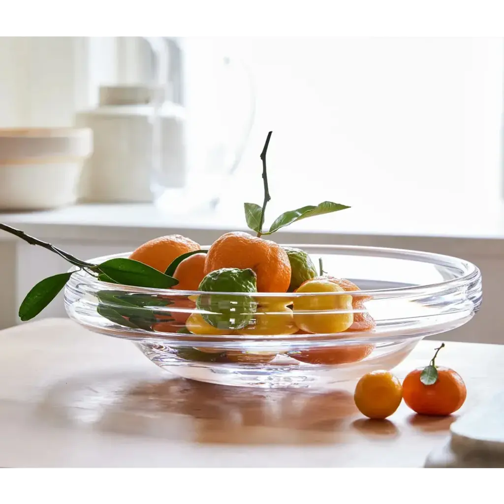 The Walden Platter brings together simplicity of form with substantial weight and brilliance. Instead of casting the glass, each piece is made by hand on the workshop floor. Its flat, broad dimensions and low side walls make it a challenge to craft, but the end result is worth it: the organic shape of this serving platter is simply lovely and ever so versatile. At Simon Pearce, fine glassware is still hand-blown in the traditional style. Simon Pearce opened his first glassblowing shop in 1971 in Kilkenny, Ireland. Ten years later, the factory was moved to Quechee, Vermont, where it remains today. The Ottauquechee River provides clean, hydroelectric power for the facility. All Simon Pearce items are proudly made in the U.S.A.