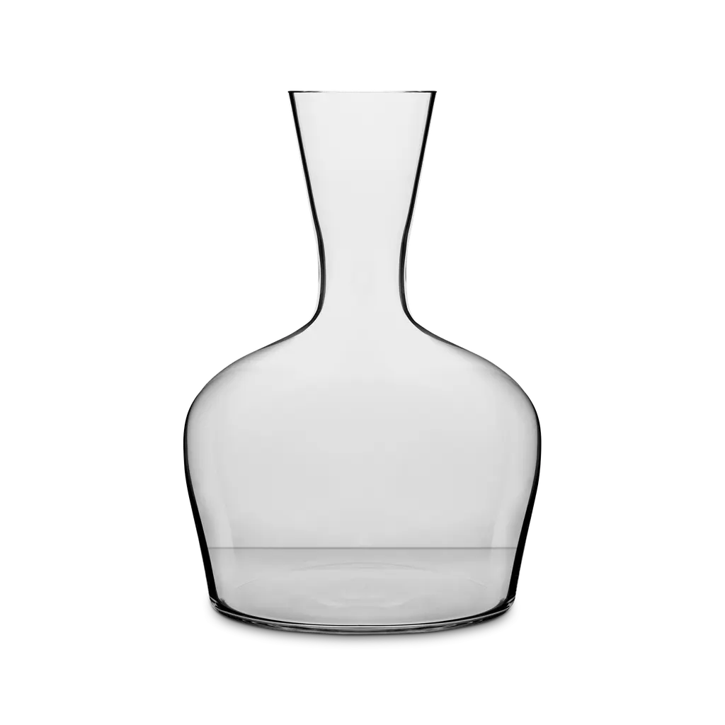 Wine decanting, made easy – and quite a bit of fun, too! The geometry of this handmade wine decanter allows it to swirl in softly kinetic circular rotation – aerating the wine within all the while. The curved neck plays against the angular base for pleasurable pouring. A fine example of design in motion. At Simon Pearce, fine glassware is still hand-blown in the traditional style. Simon Pearce opened his first glassblowing shop in 1971 in Kilkenny, Ireland. Ten years later, the factory was moved to Quechee, Vermont, where it remains today. The Ottauquechee River provides clean, hydroelectric power for the facility. All Simon Pearce items are proudly made in the U.S.A.