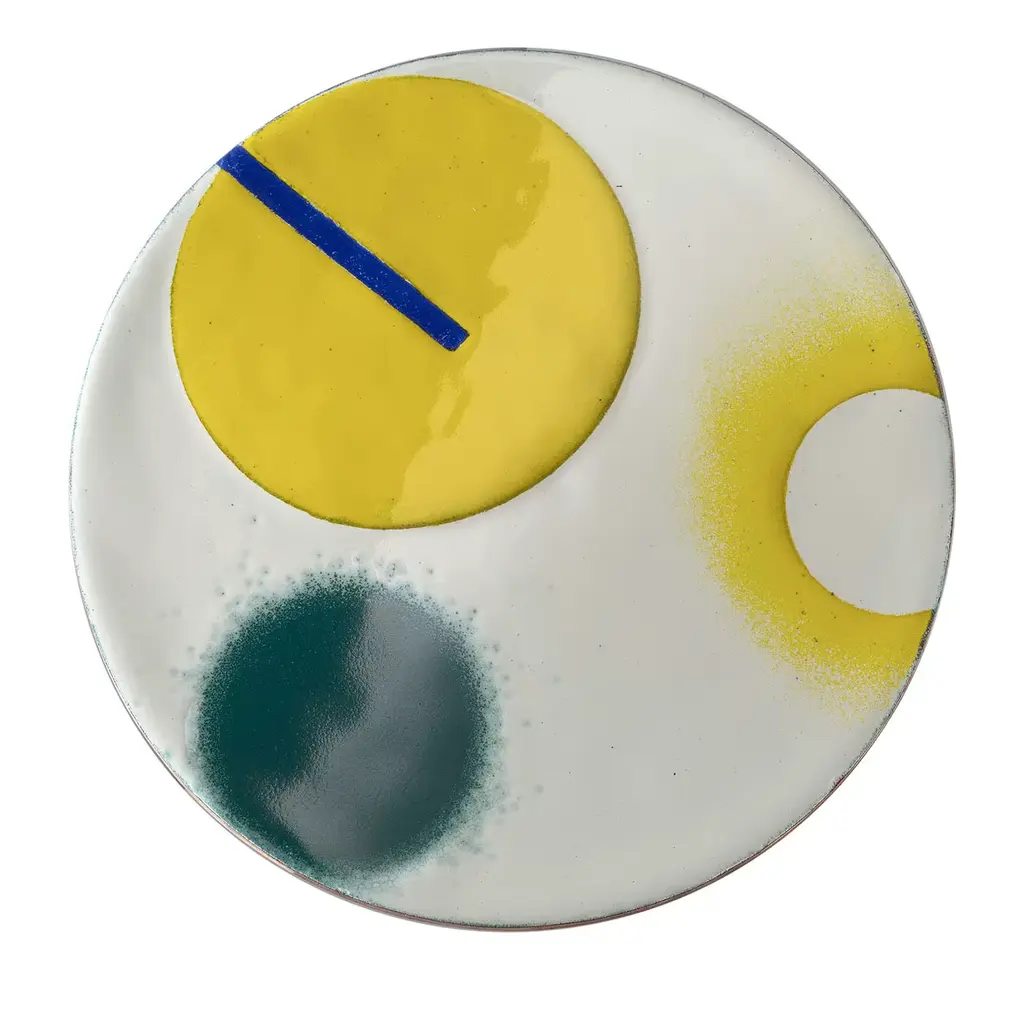 Bright in color and dynamic in design, this charming wall plate will add creative flair to any wall you choose. This particular pattern features an abstract design in a vibrant yellow that is sure to elevate your mood. Slightly flared in design, the plate has a diameter of 45 cm and is finished in a quality vitreous enamel.