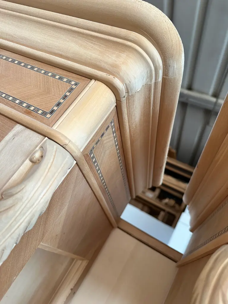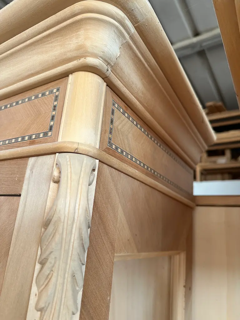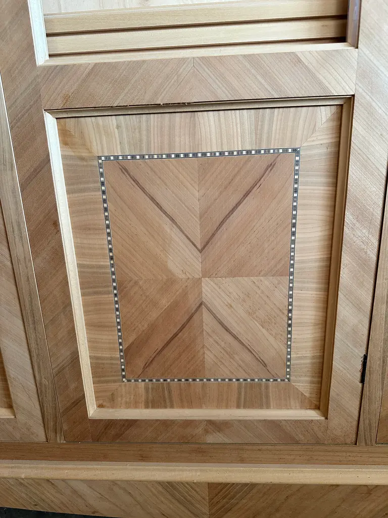 Walnut Cupboard With Cherry Inlays In Natural Raw Wood