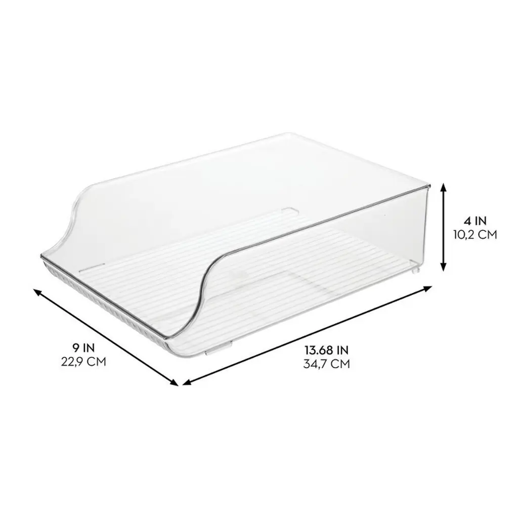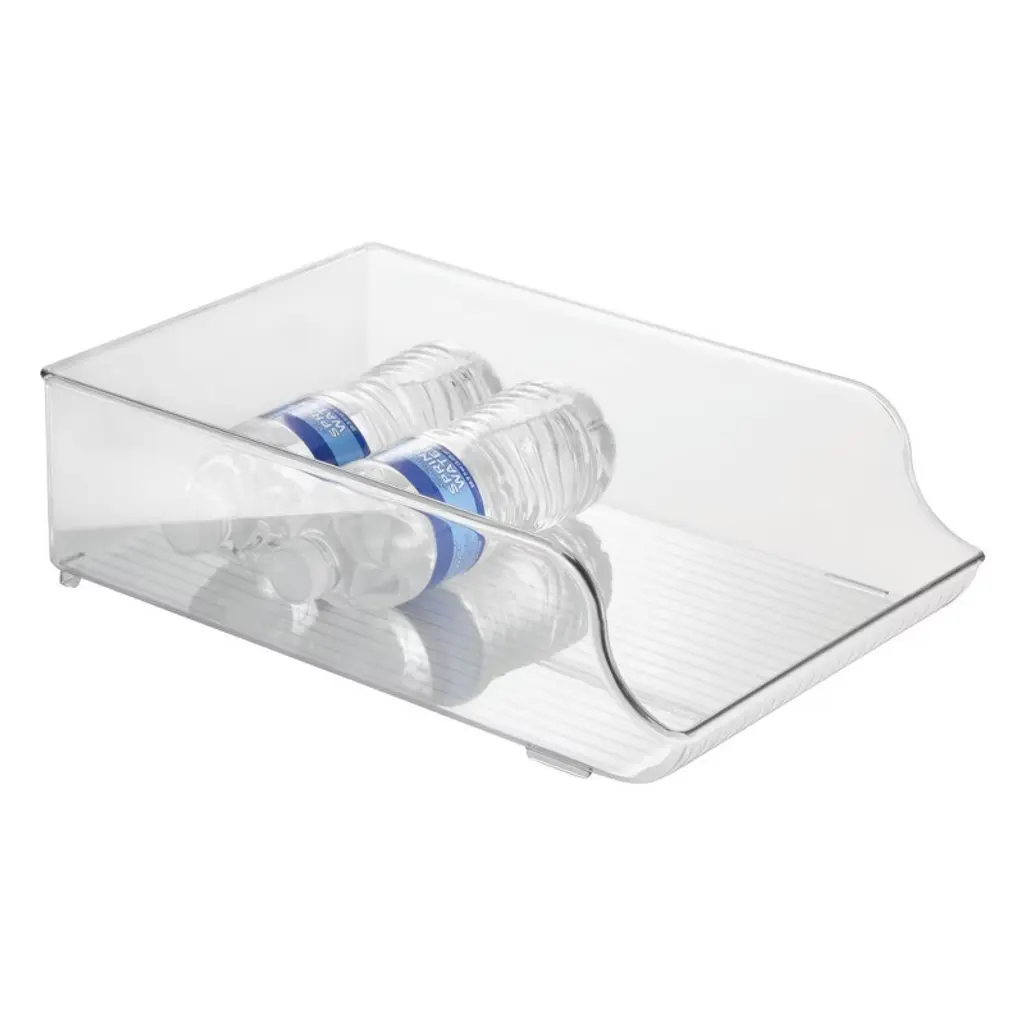 A more orderly fridge starts by designating a spot for beverages and the iDesign Water Bottle Organizer does just that. This counter-depth design holds up to nine standard-sized water bottles, making it easy to find and grab your favorite beverage. The sloped design allows bottles to roll gently to the front for optimal visibility, and the raised front edge and side walls ensure bottles never roll out of place, ensuring long-lasting organization.