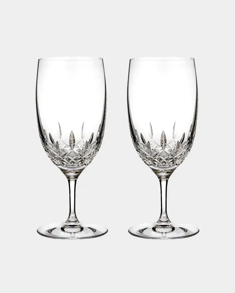 Iced beverage glasses made of lead crystal. Set of two. Each holds 19 ounces. Approx. 8.5"T each. Hand wash. Imported. Proposition 65 warning for California residents About Waterford Crystal: Established in 1783, Waterford crystal is cherished around the world for its rich tradition of craftsmanship and artistry. Each piece, from stemware to decorative items, is still mouth blown and handcrafted by master artisans. A customary gift to royalty and heads of state—a treasured heirloom for generations.