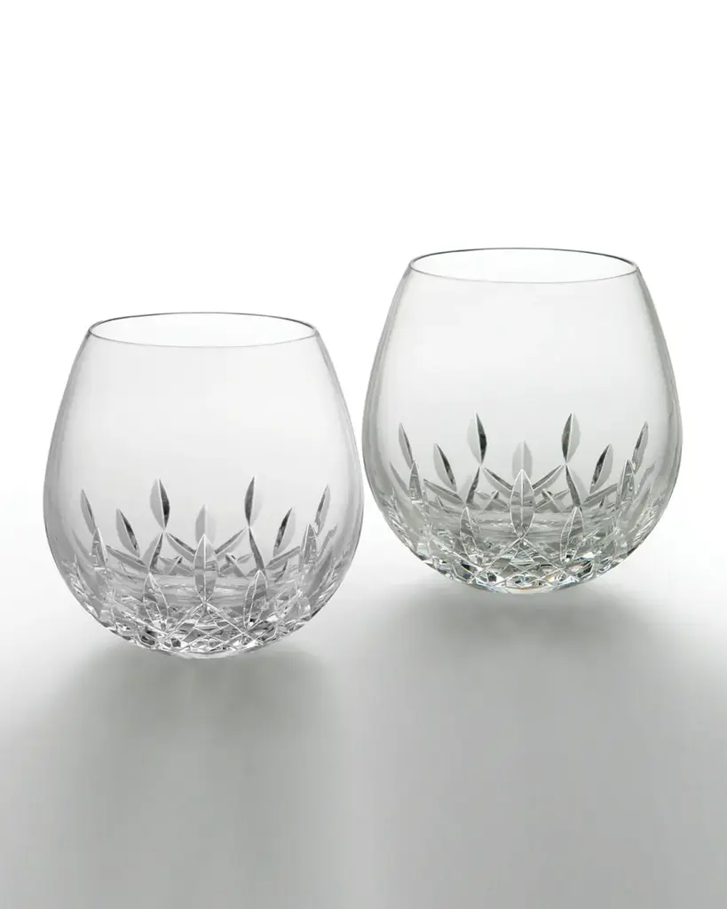 Handcrafted stemless wine glasses. Clear crystal with diamond and wedge cuts; flat base. Holds 12 ounces; 4"Dia. x 4.25"T. Dishwasher safe. Imported. Proposition 65 warning for California residents About Waterford Crystal: Established in 1783, Waterford crystal is cherished around the world for its rich tradition of craftsmanship and artistry. Each piece, from stemware to decorative items, is still mouth blown and handcrafted by master artisans. A customary gift to royalty and heads of state—a treasured heirloom for generations.