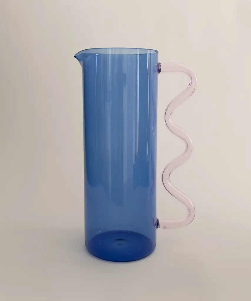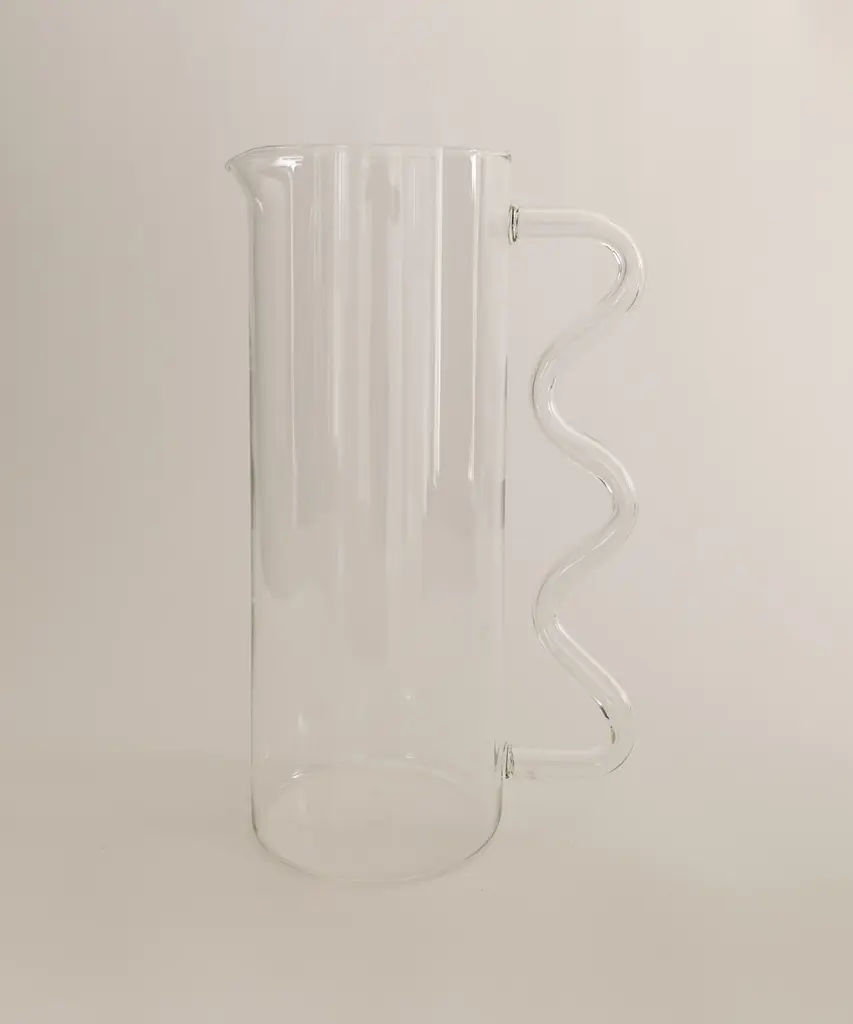 A borosilicate glass pitcher, for pouring water, juice, watering plants, holding flowers, or any other use you can think of. Designed by Sophie Lou Jacobsen, a French-American designer based in New York City.