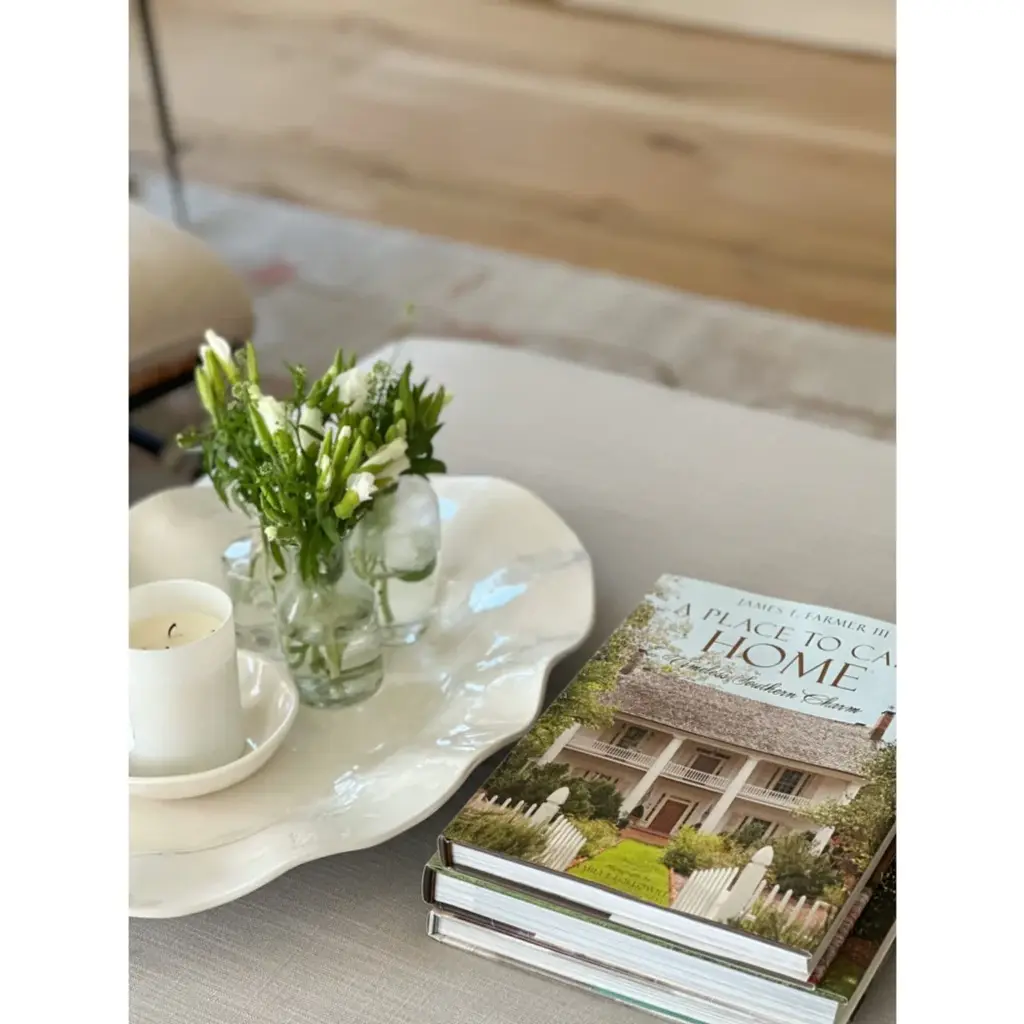 Whether dining indoors or out, this stunning platter will add delightful charm to your table. Featuring a wavy whimsical design, finished in stone and made of melamine. Entertaining or everyday use will be worry free. Additional pieces are available to create a beautiful table.