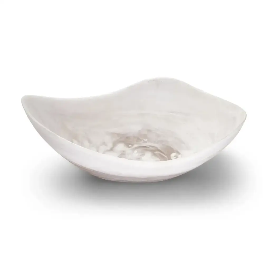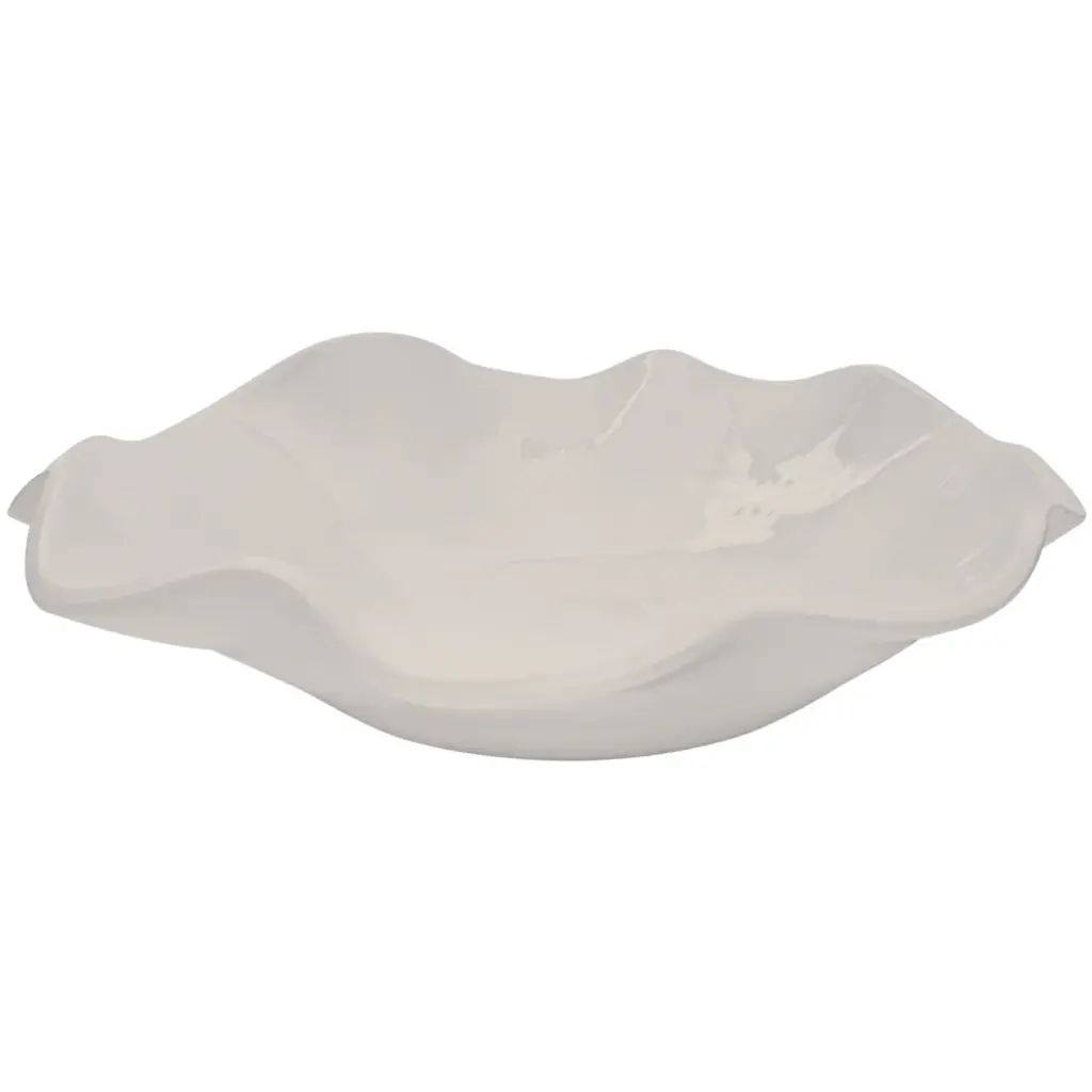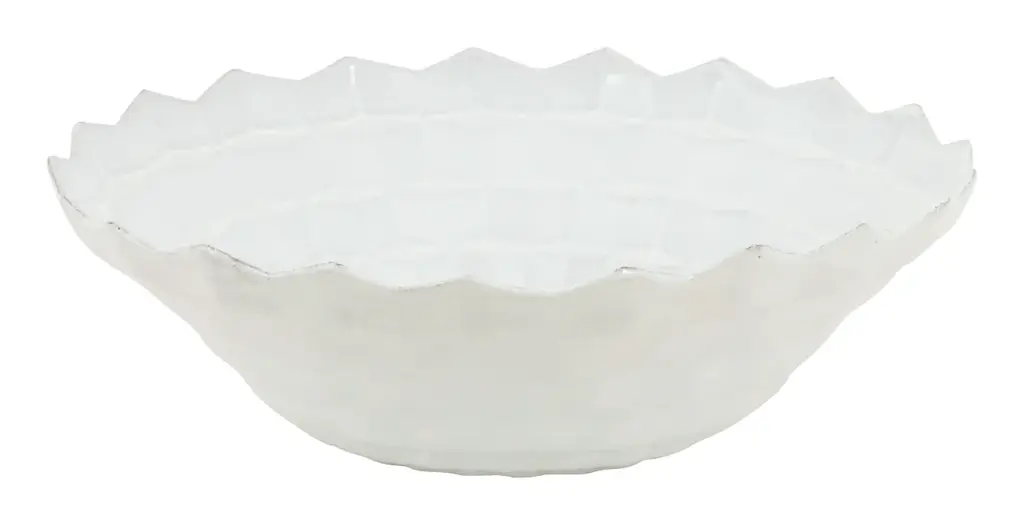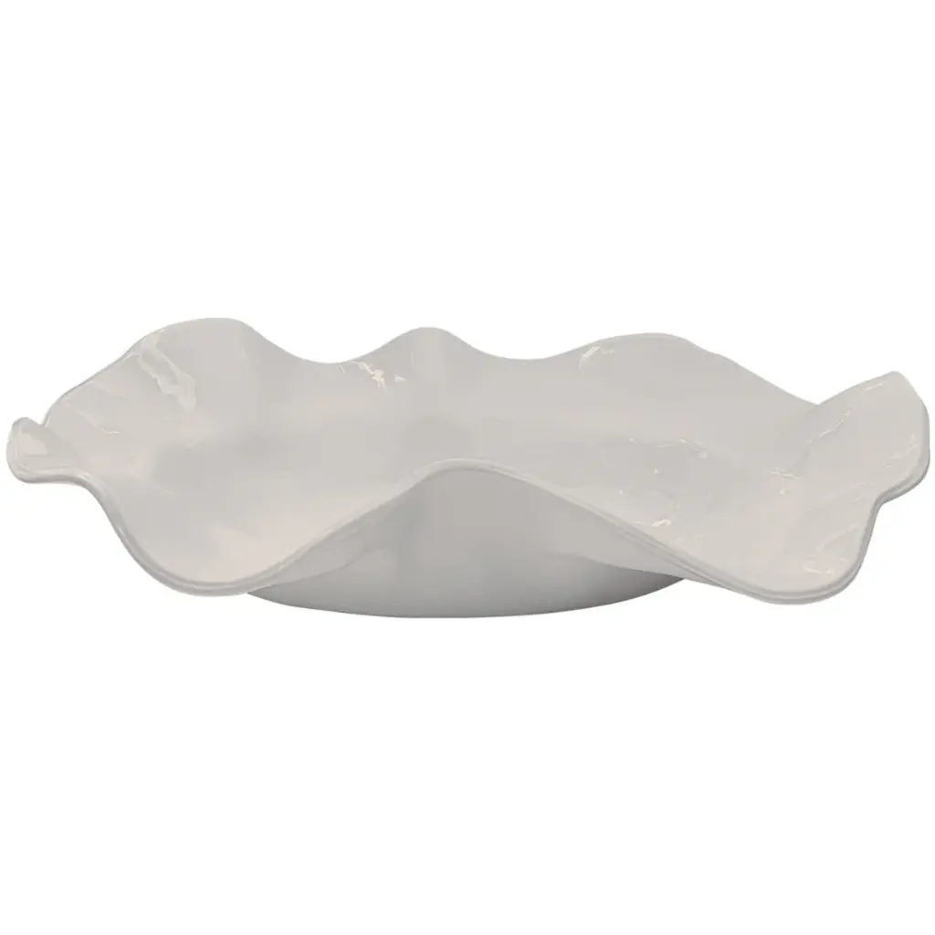 Whether dining indoors or out, this stunning bowl will add delightful charm to your table. Featuring a wavy whimsical design, finished in white and made of melamine. Entertaining or everyday use will be worry free. Additional pieces are available to create a beautiful table.