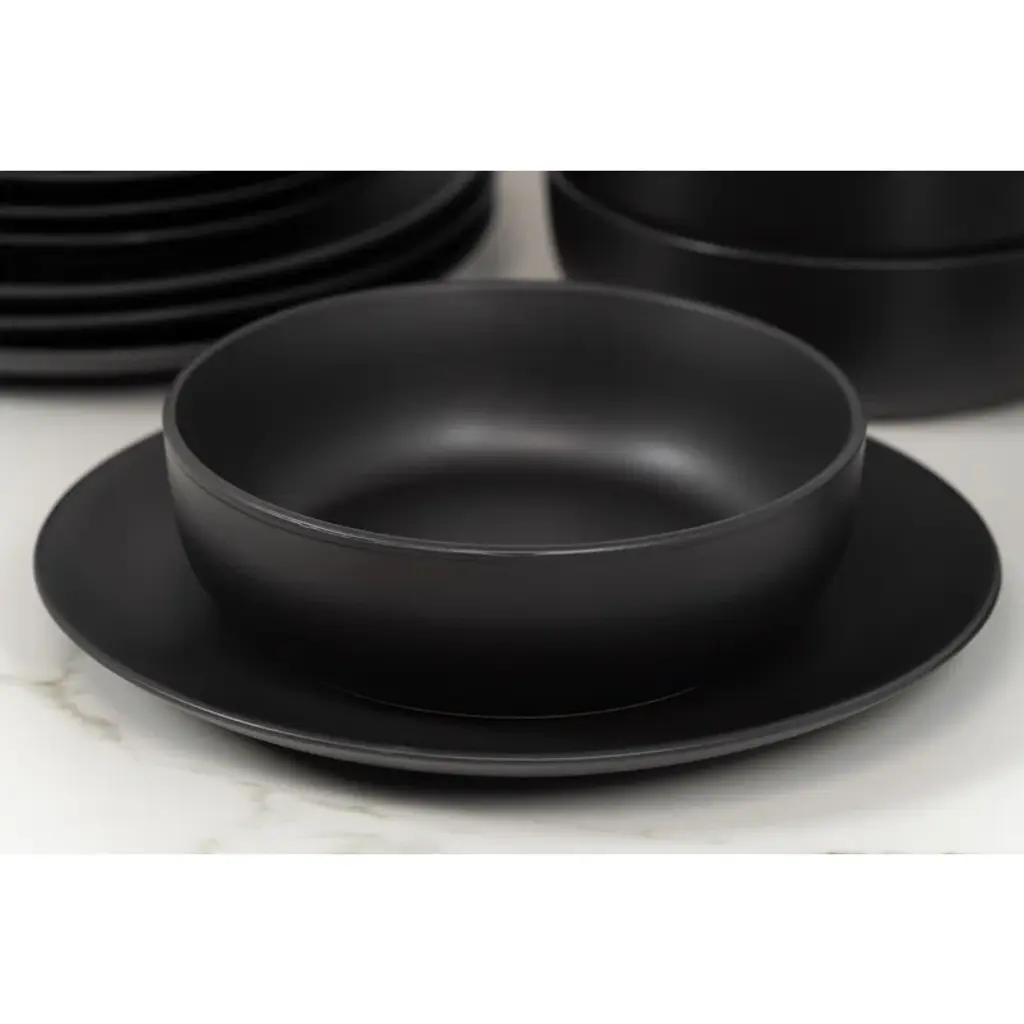 This 16-piece dinnerware set is your go-to for effortless dining, whether it's a casual meal or a dinner party. Designed for four, it includes dinner plates, salad plates, pasta bowls, and mugs, all crafted from stoneware with a sleek matte finish. The minimalist design fits seamlessly into any kitchen aesthetic, making it a versatile addition to your table. Plus, each piece is microwave and dishwasher safe, so reheating and cleanup are a breeze. Stackable for easy storage, this set is perfect for those who appreciate both style and convenience.