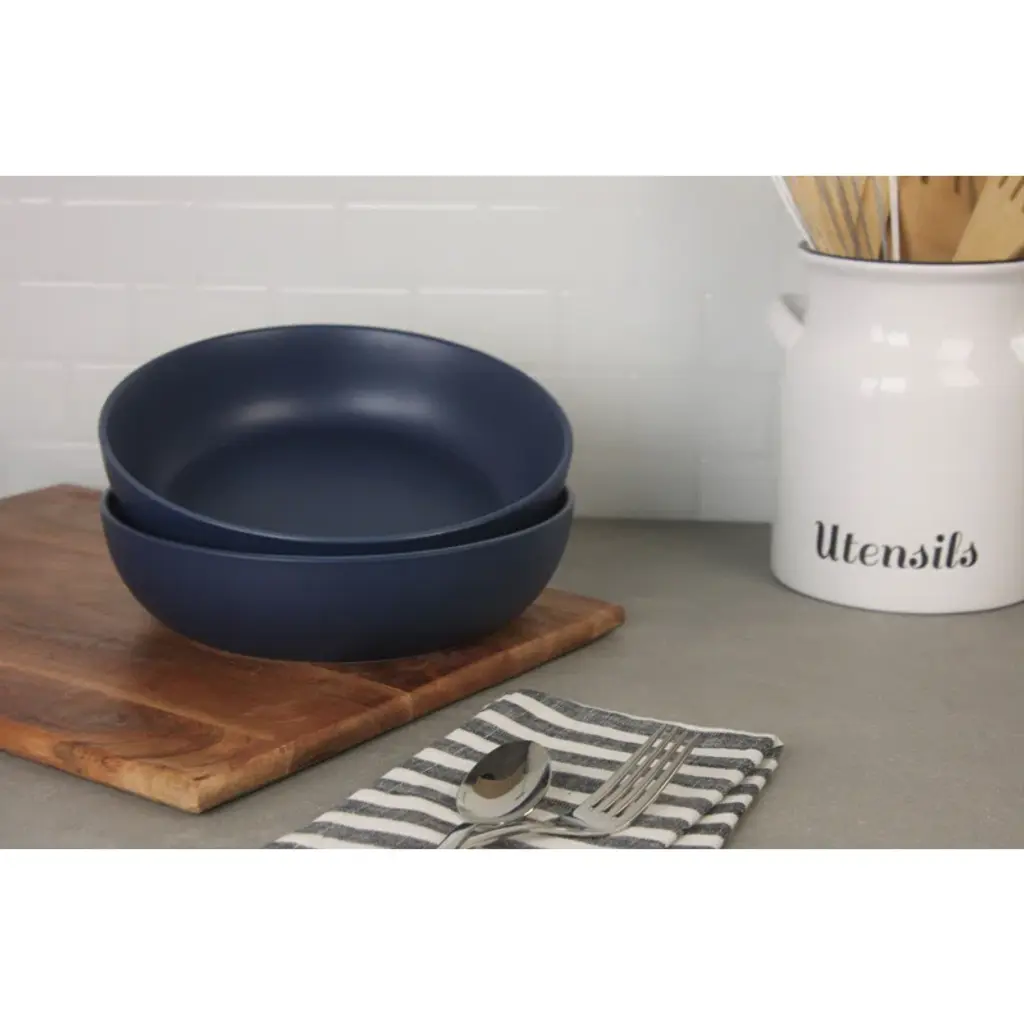 Perfect for serving up your favorite salads or housing enough popcorn to get you through a movie marathon, a serving bowl like this is a versatile touch for rounding out your plate ware. Crafted from stoneware, this bowl features an understated round silhouette and solid-hued finish, so it's easily added to a variety of styles. And since this piece is dishwasher safe, cleaning up after a meal is a breeze. Arrives as a set of two bowls.