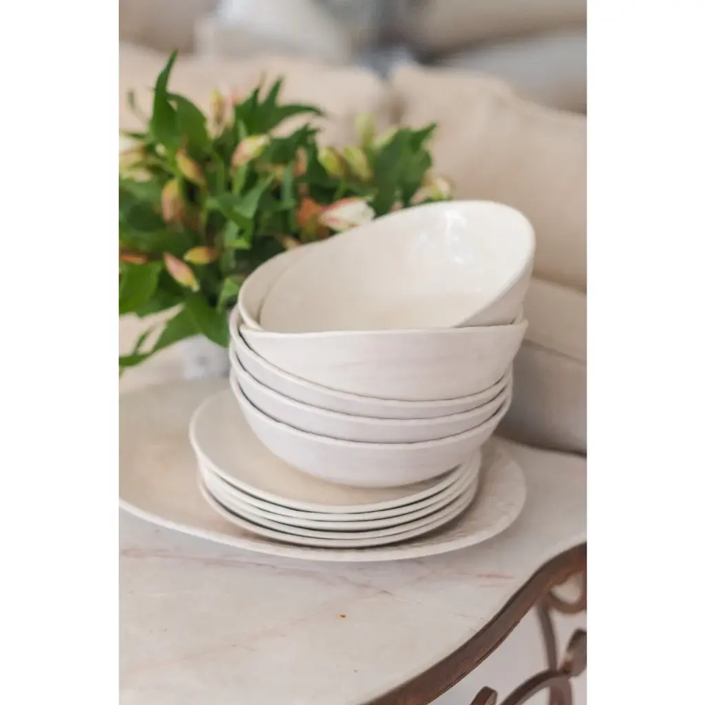 This salad plate features a simple yet sophisticated design with an organic textured weave that elevates any table setting. Crafted from melamine, it offers impressive durability and ease of care while mimicking the look and feel of fine ceramic. Available in cream, stone, and white, it blends seamlessly into diverse dining styles, combining practicality with refined elegance.