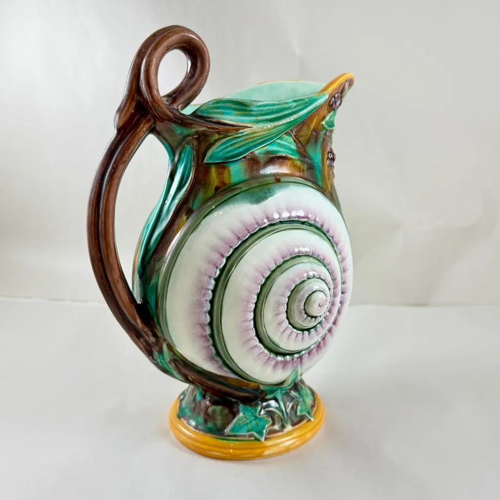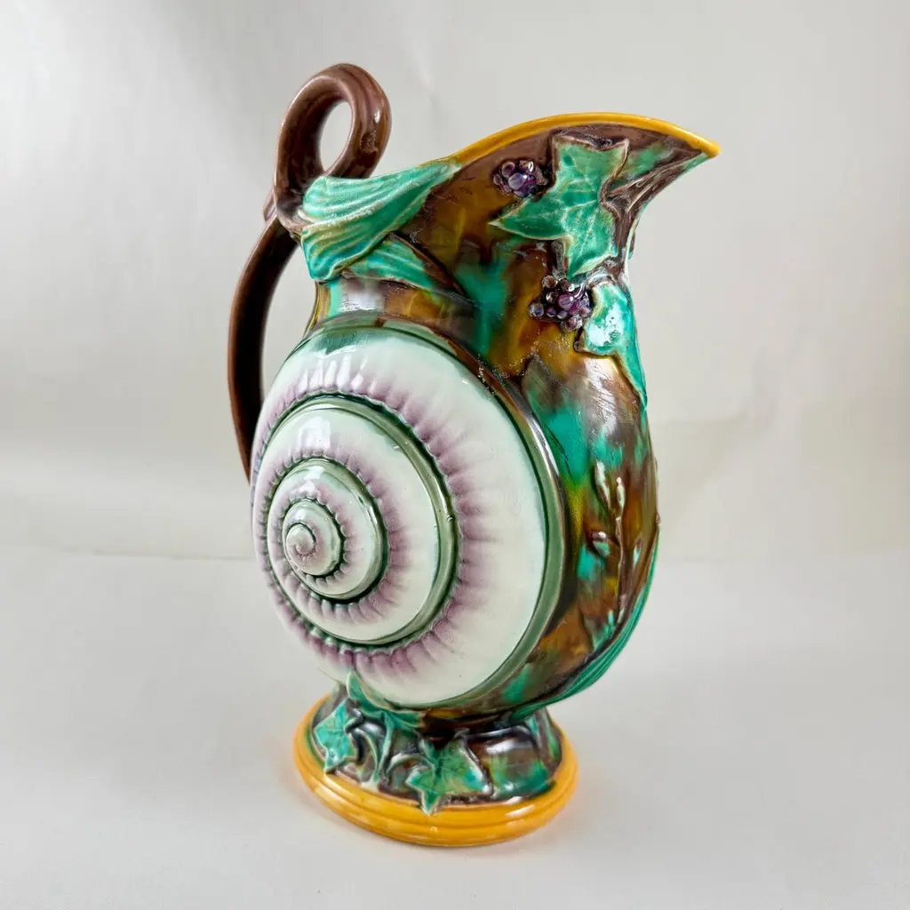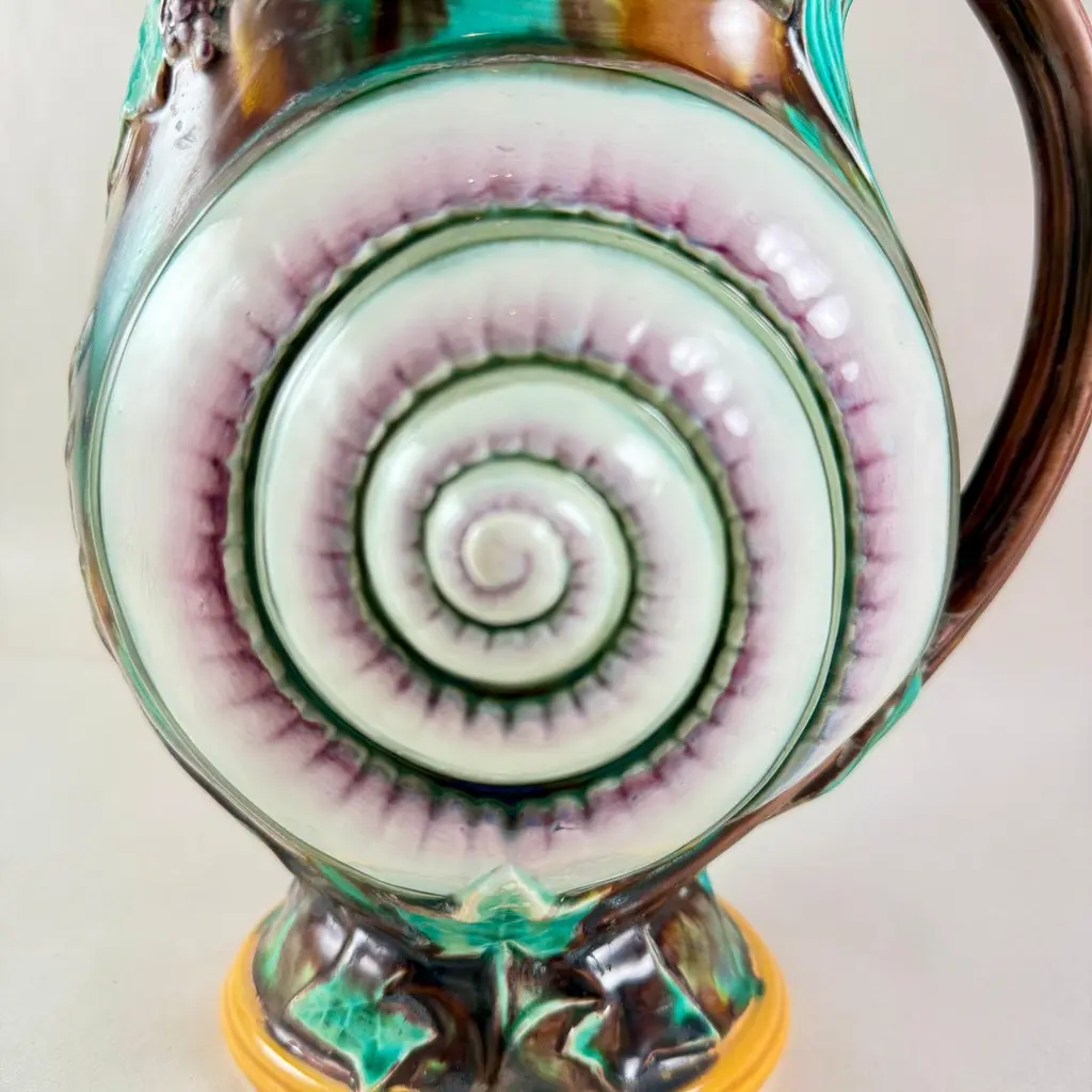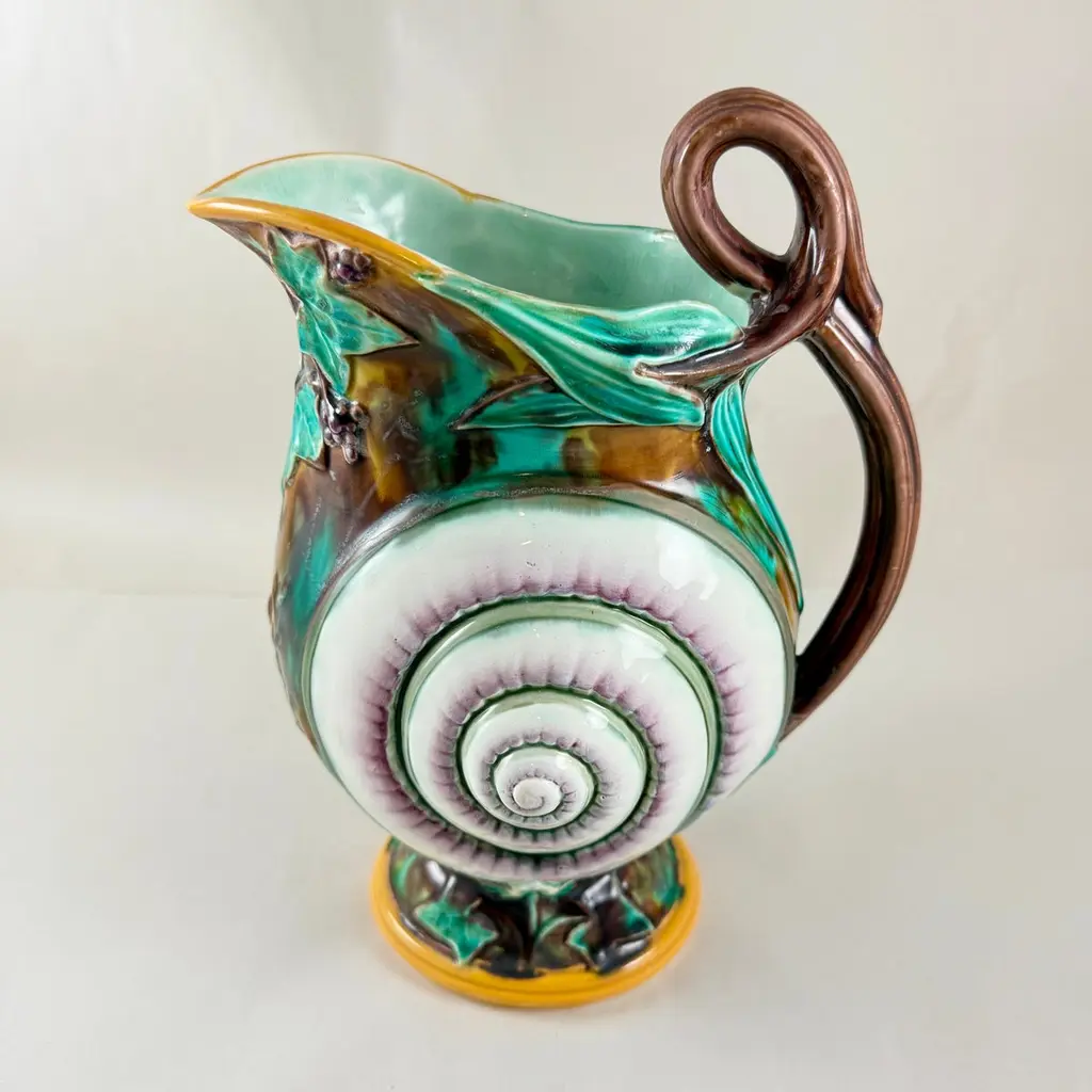 Wedgwood English Majolica Snail Shell And Ivy Pitcher Date Marked 1870