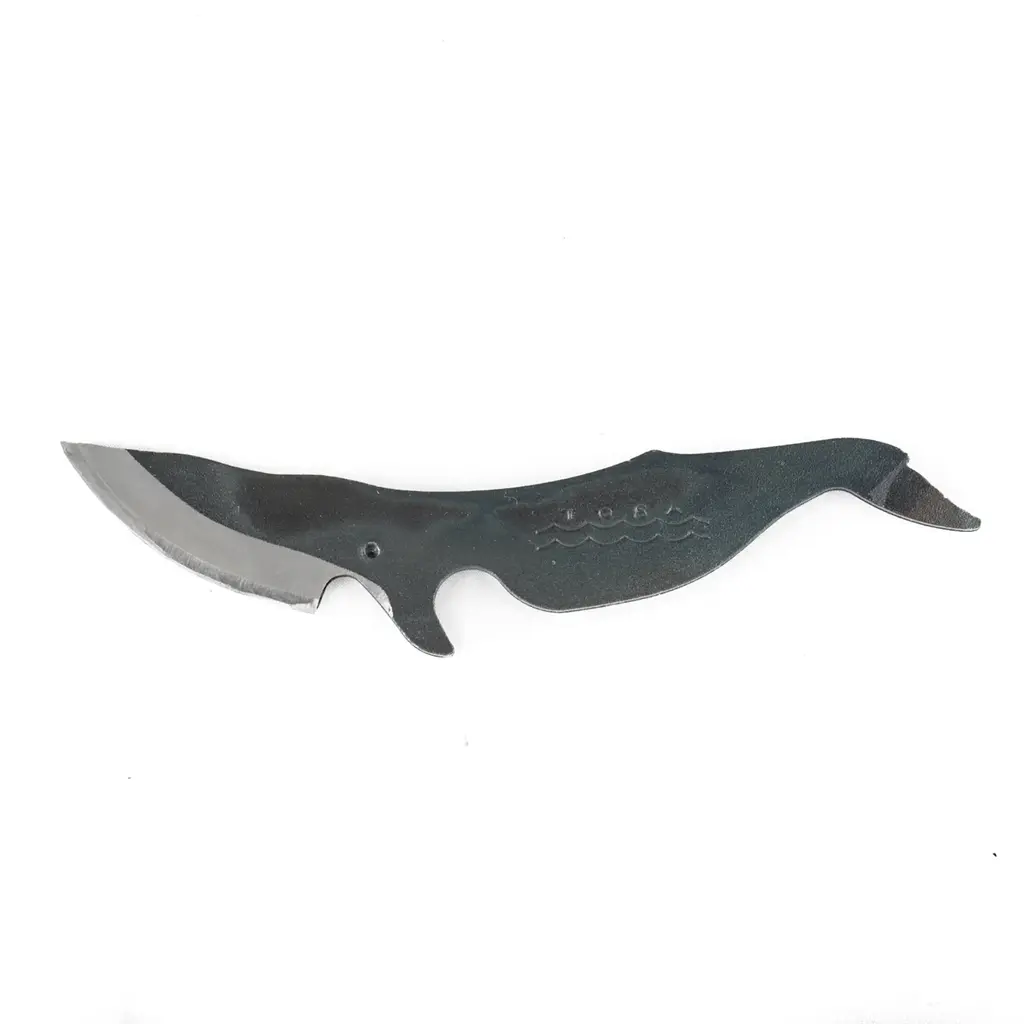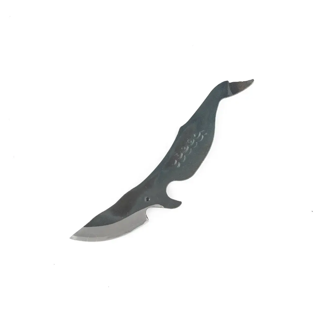 The Kujira “whale” Knife, hand-forged and featuring a high carbon white steel core, is a versatile and imaginative utility knife. Its unique whale-shaped design is not just a visual delight but also functional, enhancing the user experience. The whale knife boasts a “kurouchi” black-forged finish that extends to the handle, giving it a distinct, textured appearance while also ensuring blade protection. Ideal for a range of tasks from camping adventures to kitchen necessities, the Kujira Knife excels in tasks like whittling, slicing cheese, or paring fruit, making it a practical yet conversation-sparking addition to any collection.