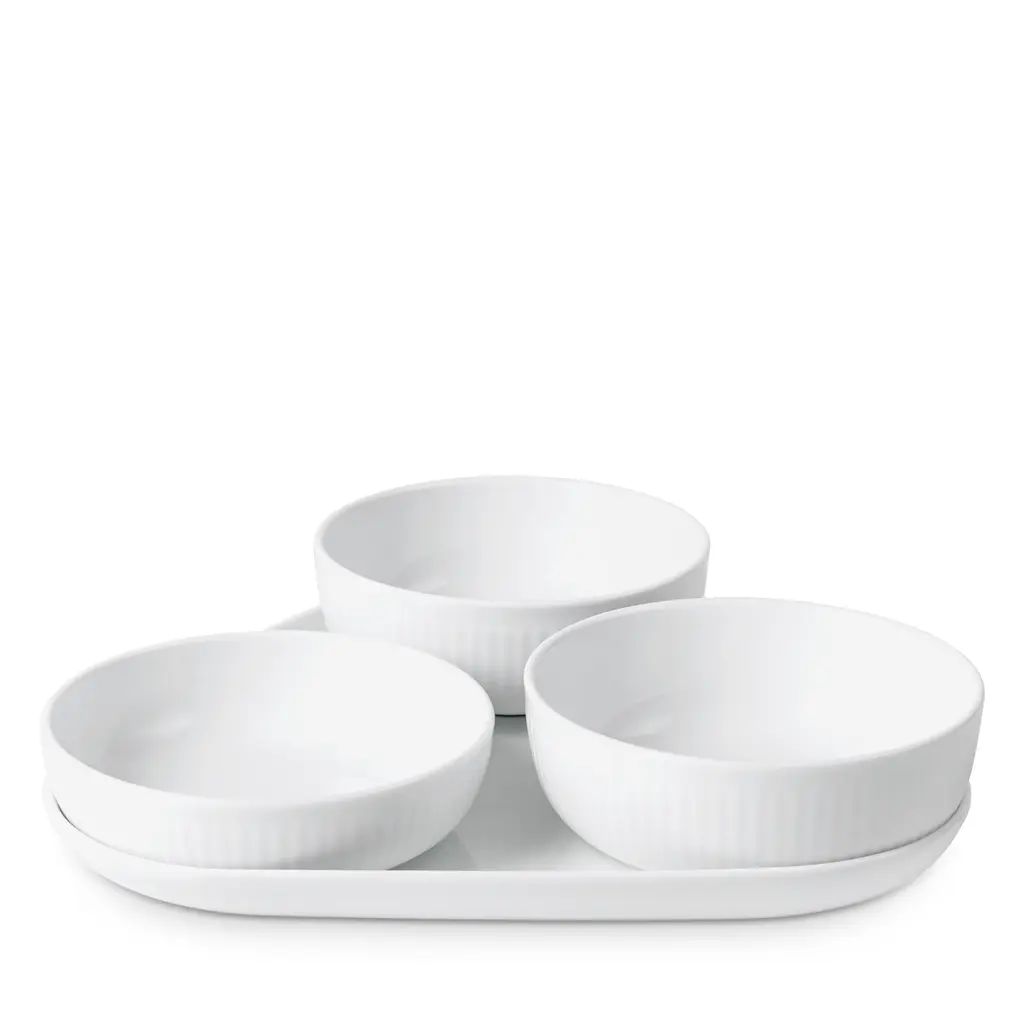 A simple fluted pattern lends rich texture to this elegant white dinnerware collection from Royal Copenhagen. High-quality porcelain makes it a beautiful, durable choice for entertaining and everyday dining alike.
