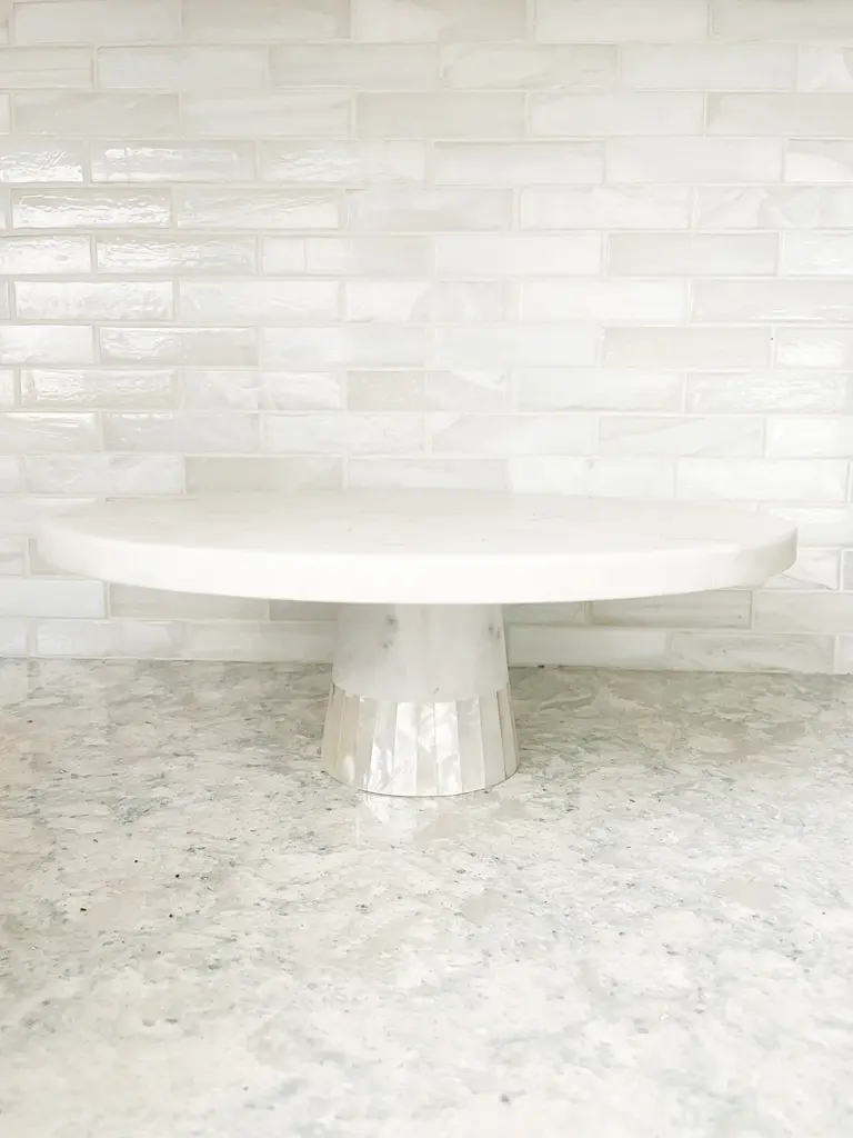 White Marble Cake Stand With Mother Of Pearl Inlay