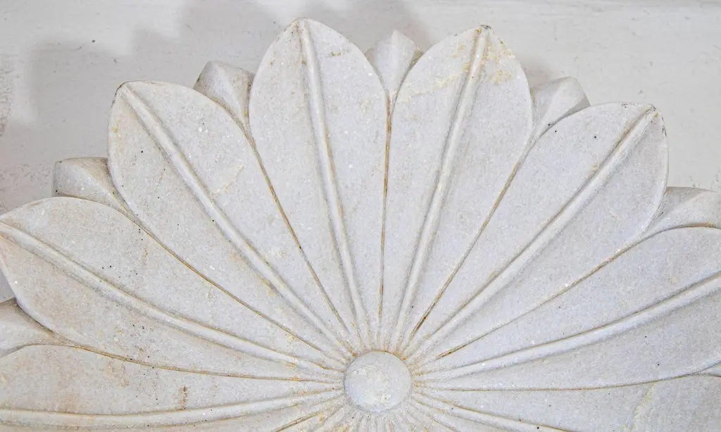 White Marble Open Lotus Flower Shape Large Blow Hand-Carved In India Raj Mughal