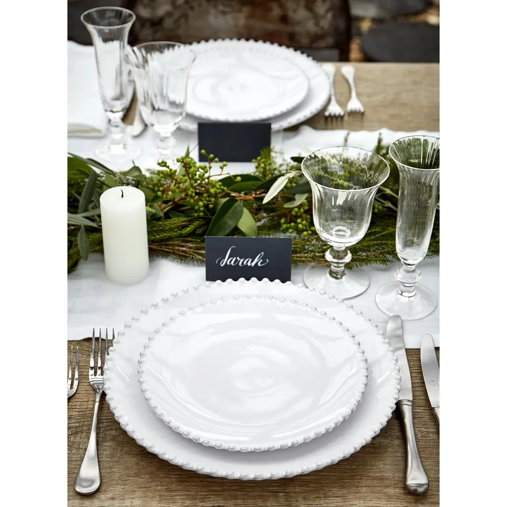 Inspired by 18th- and 19th-century European ceramics, the Pearl collection from Costa Nova is a modern classic in timeless white featuring round shapes and large beaded edges.