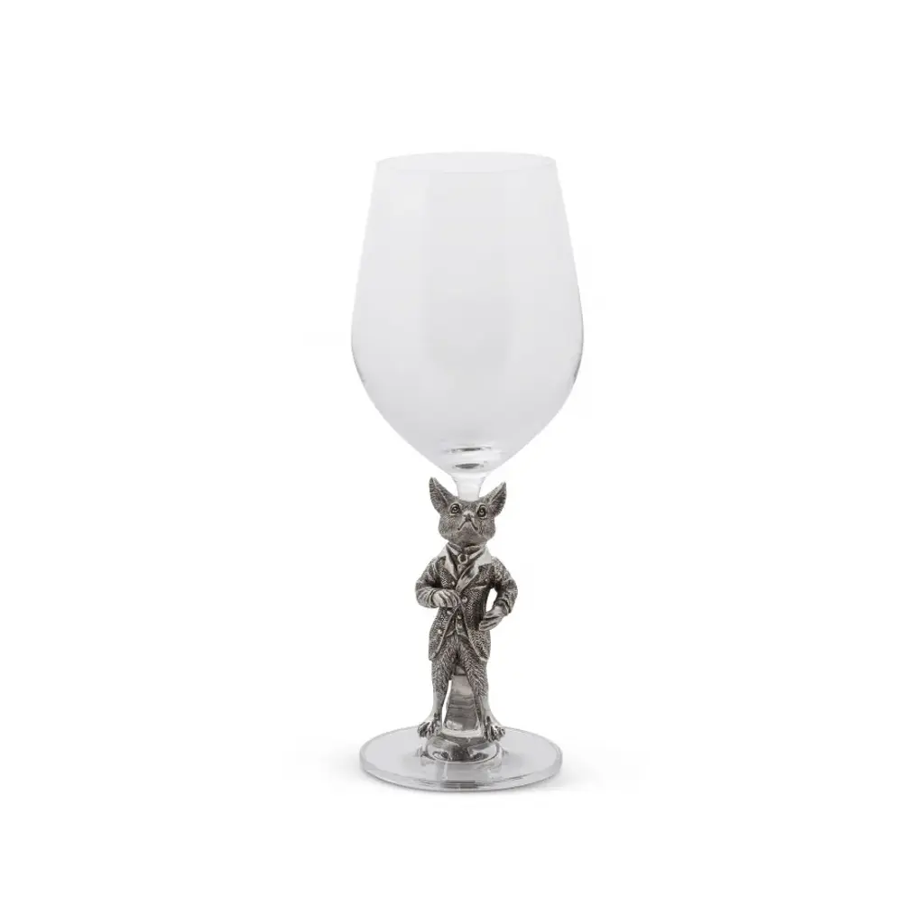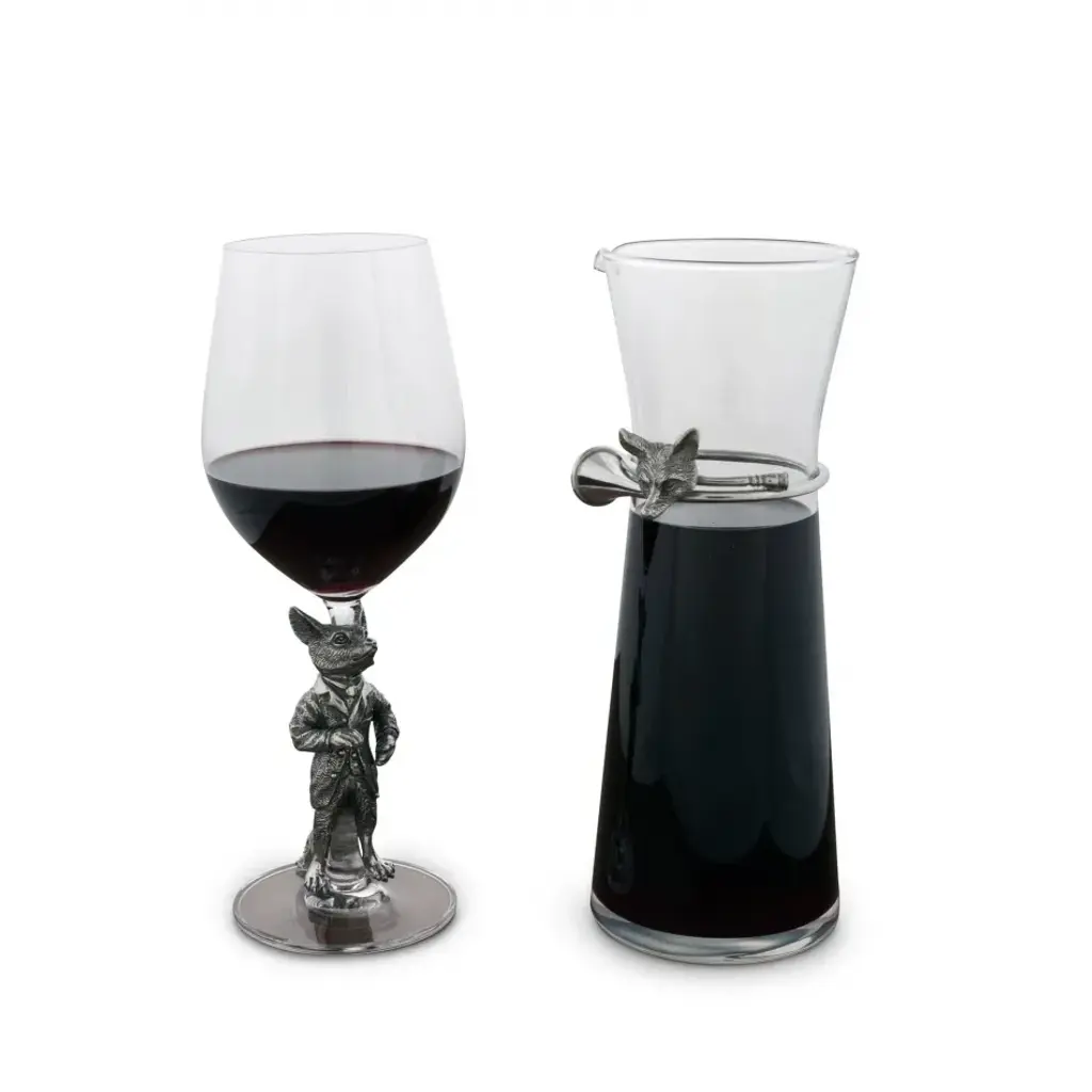 Pour a glass of your favorite vintage in this Vagabond House white wine glass. The stem sports a dapper dressed fox, who is cast in pewter for staying power. Above, the bowl of the glass is shaped to ensure the best presentation and taste of sweet, crisp or dry white wines. Serve chilled dessert wines right out of the fridge, or warm things up with a mulled wine recipe you can sip with guests next to a fire or on an autumnal patio. The glass measures 3 x 3 inches and stand 9.5 inches, so it's also the right size for integration into most table settings. The fox accent adds a whimsical conversational touch, and you can pair the glass with other nature-inspired dinner and drink ware for a comprehensive statement. Vagabond House is a family-owned American company specializing in fine pewter tableware, servingware and giftware. Largely inspired by nature, their exclusive products are designed to be unique, functional heirlooms for those who seek to express tradition and style in both family and formal entertaining.