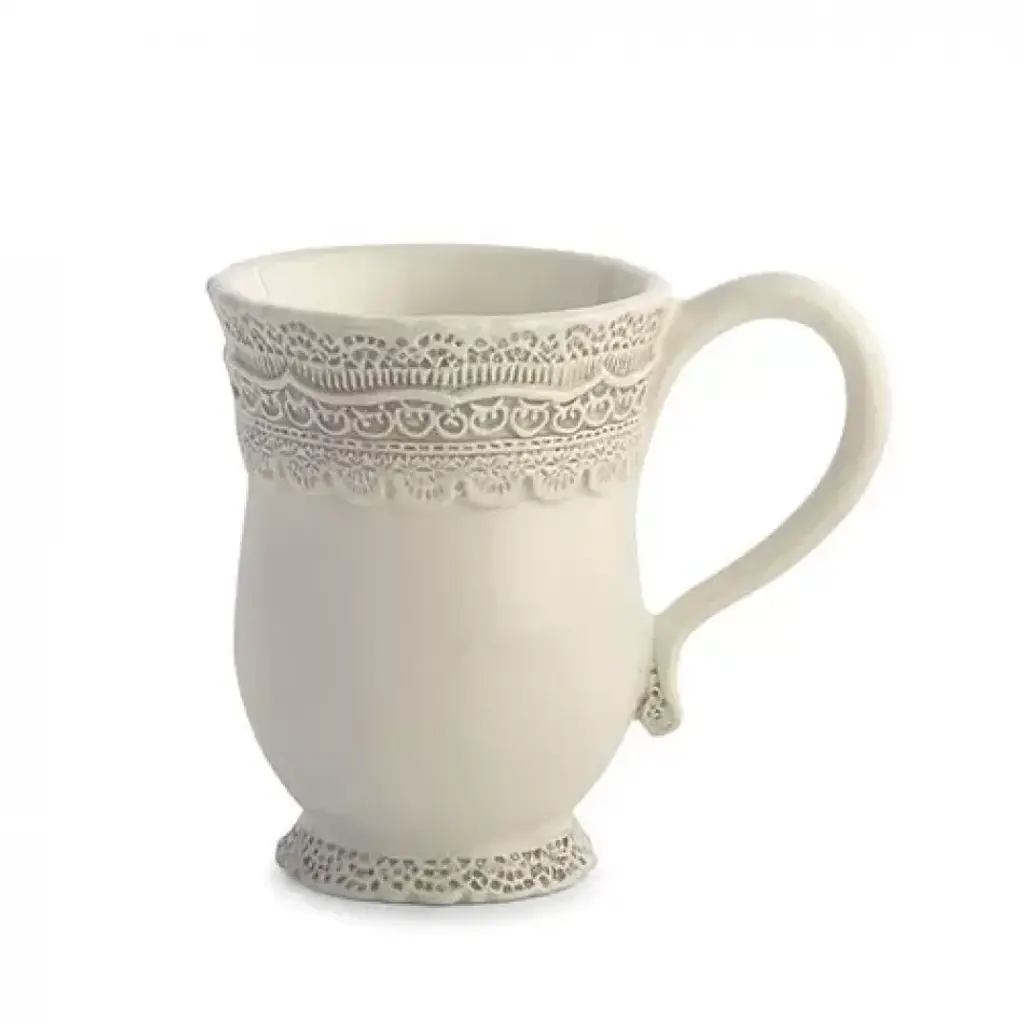 A serene celebration of the winter season, our belly mug adds a subtle touch of the holidays to every sip. It's made of stoneware with a white reactive glaze finish that pools with one-of-a-kind character over embossed stars, hearts, and forest foliage. Wrap this sweet, Scandinavian-inspired drinkware up with any of our specialty coffee, tea, or cocoa blends for instant gifting.