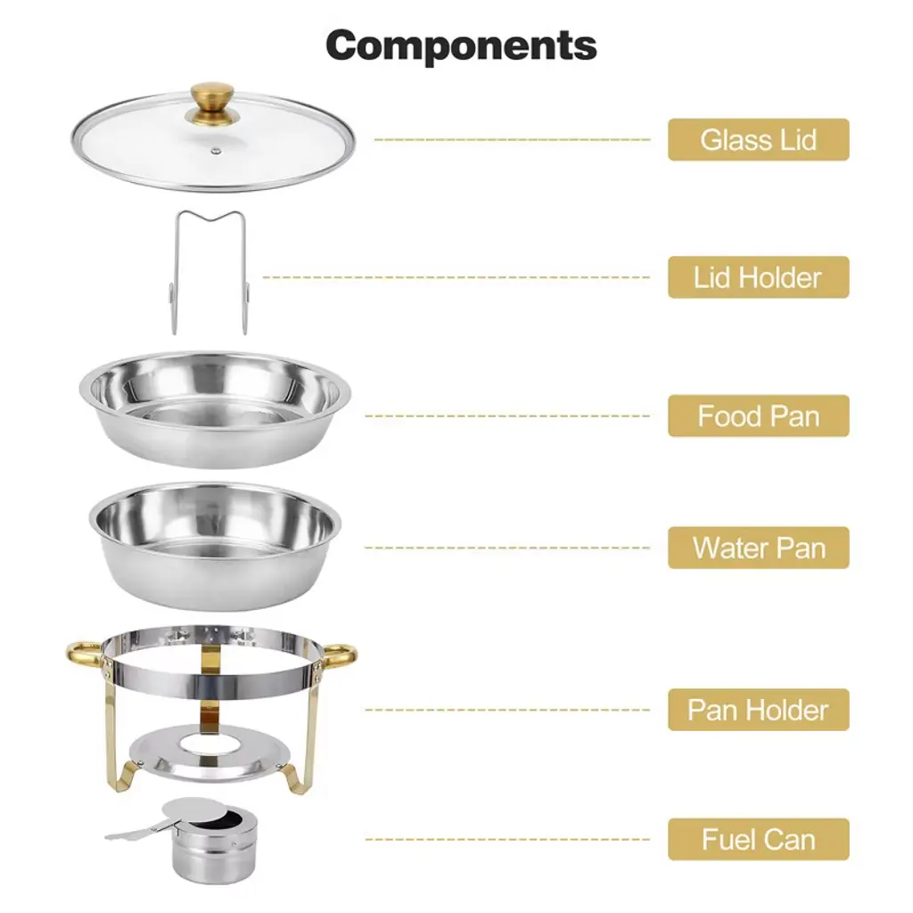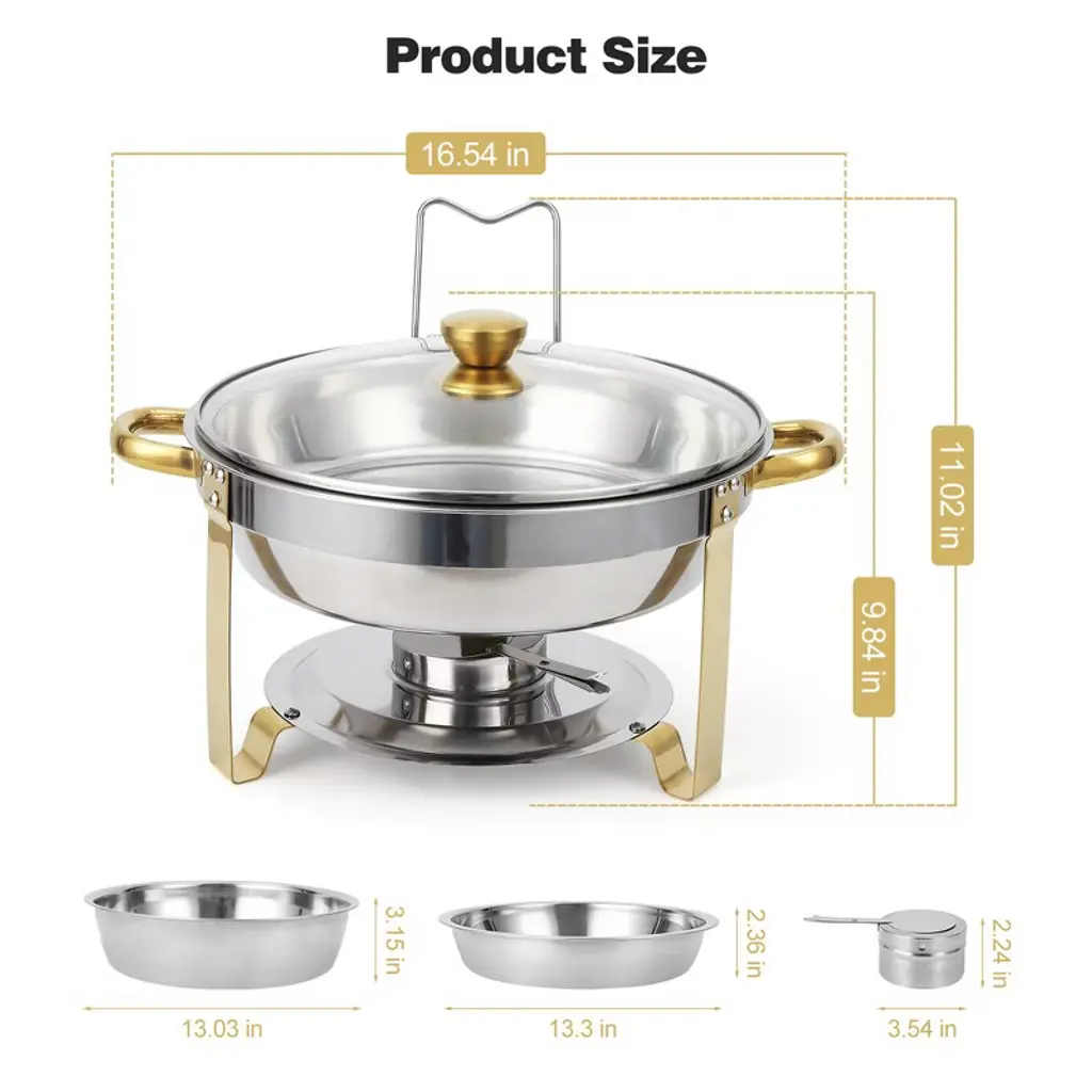 Whizmax Chafing Dish Buffet Set 2 Pack 5Qt, Stainless Steel Round Chafing Dishes For Buffet With Lid Holder & Glass Lid, Gold