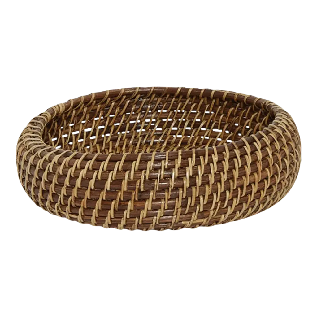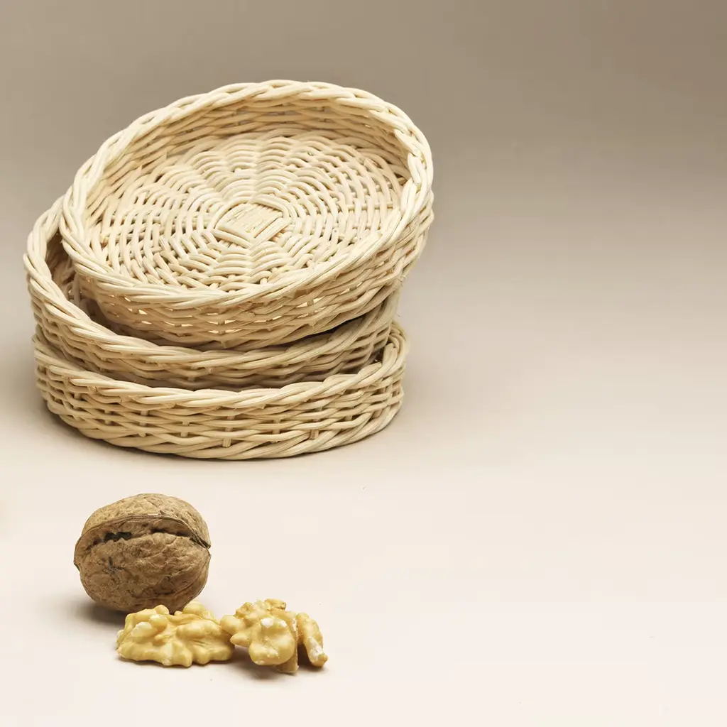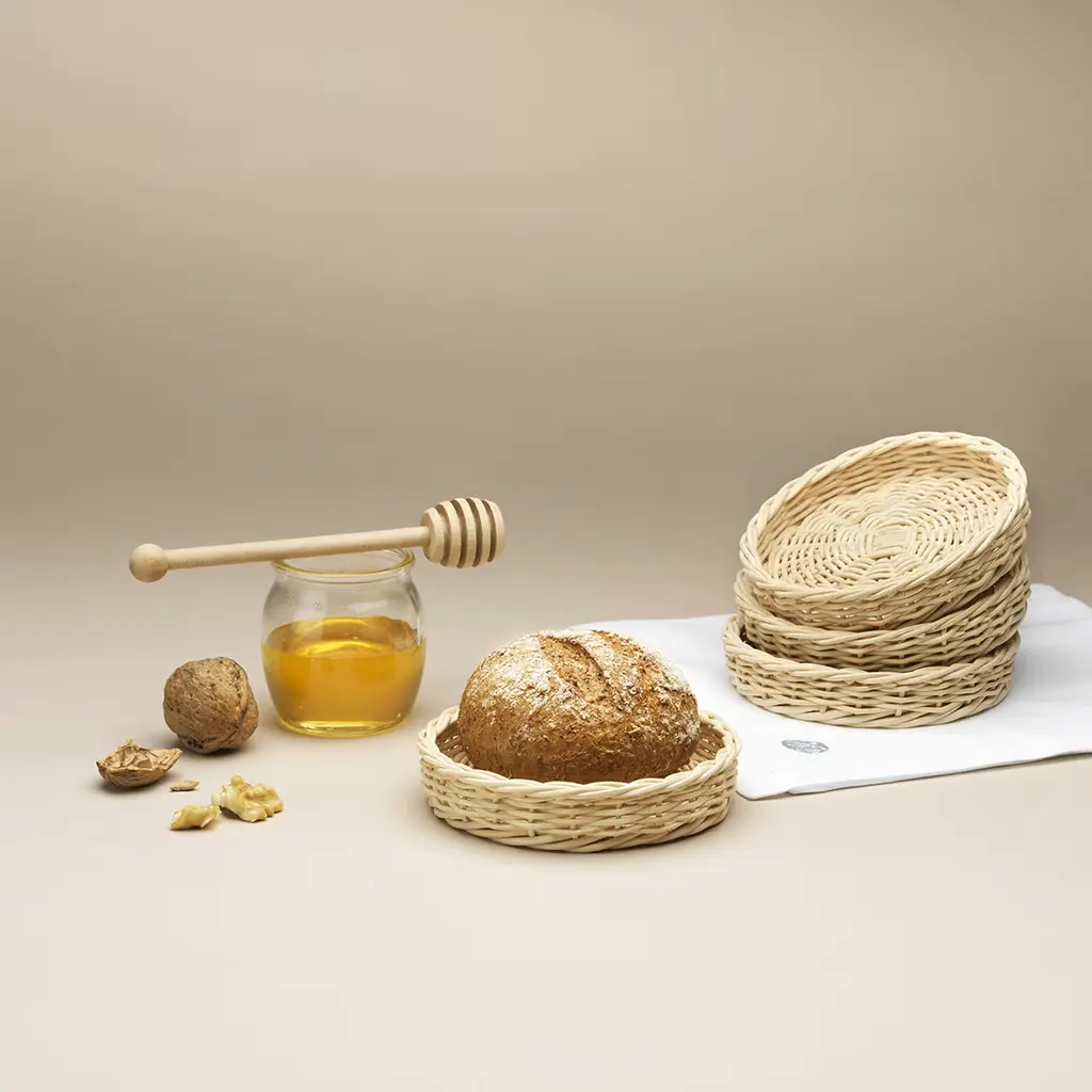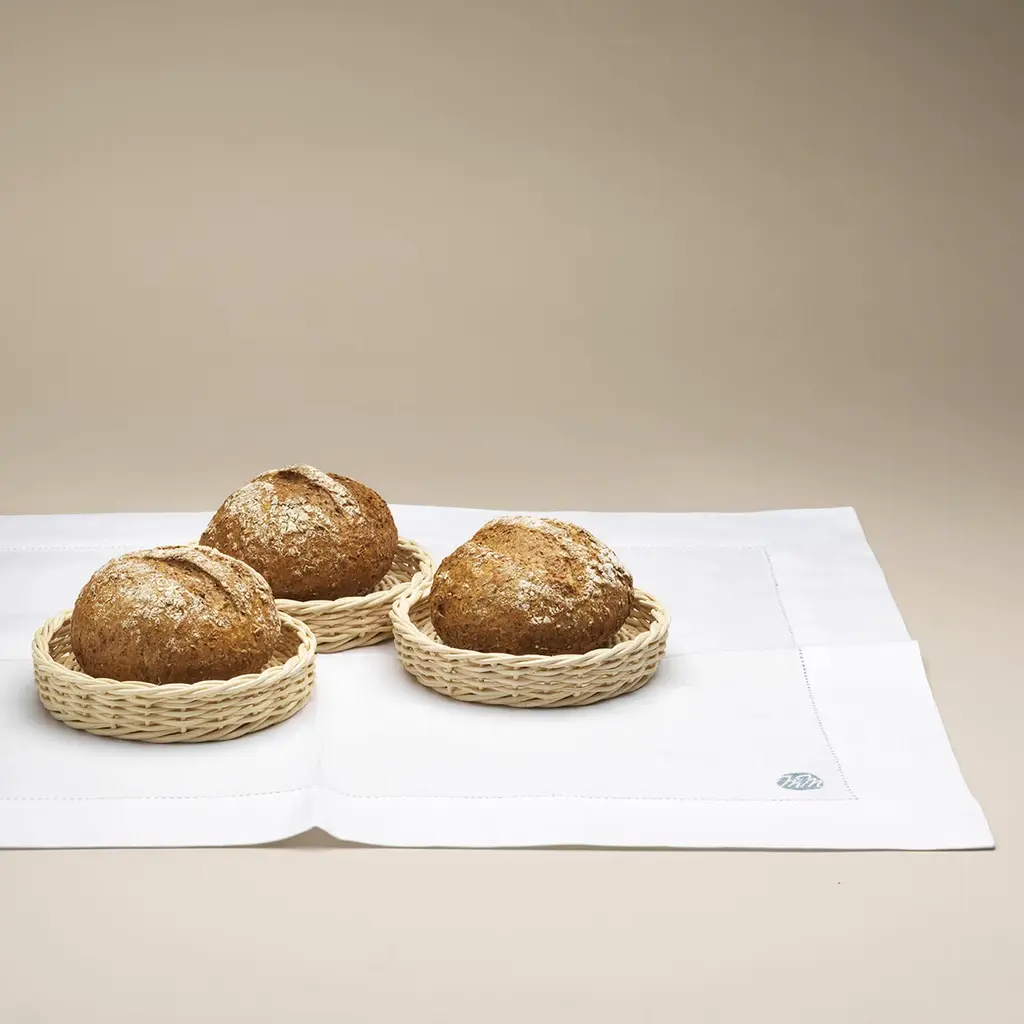 This refined, handmade design encapsulates the rustic charm of traditional wicker baskets while serving as a refined, must-have piece for an elegant table arrangement. Minutely hand-woven from reeds treated with a special water-based finish that maintains their natural look untouched, it will welcome bread slices either on breakfasts, dinners, or lunches in exclusive, rustic-chic homes or hospitality contexts.