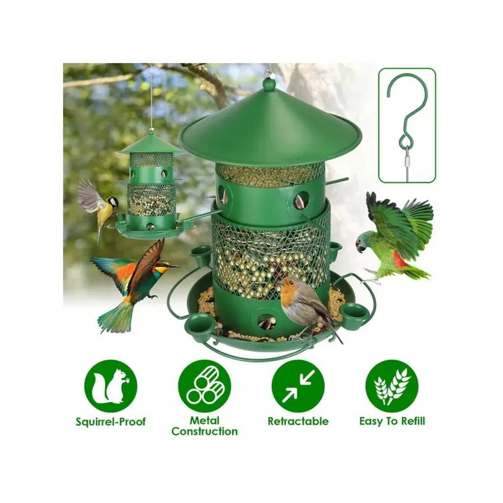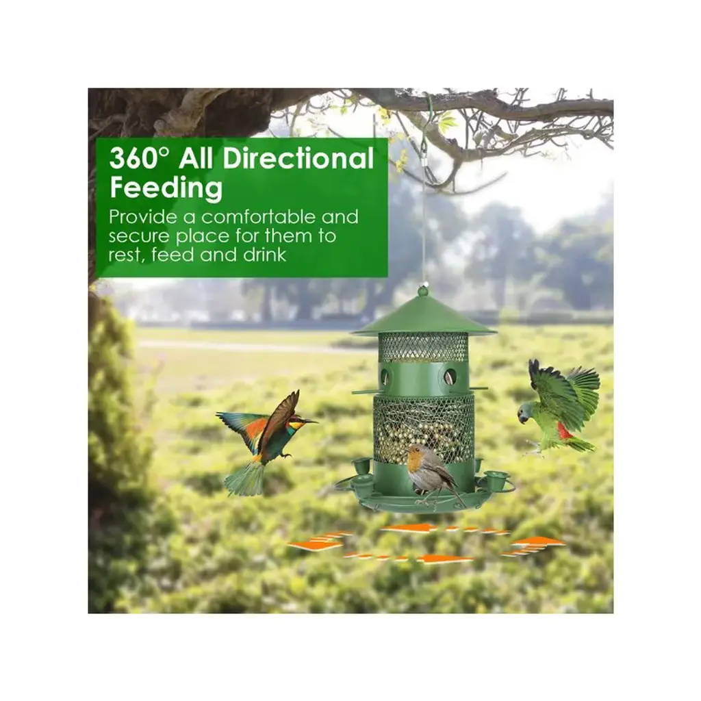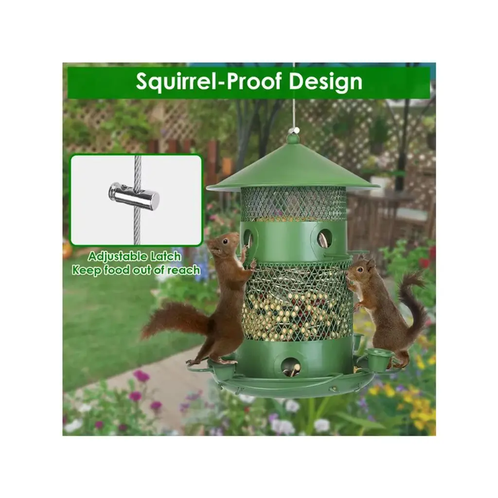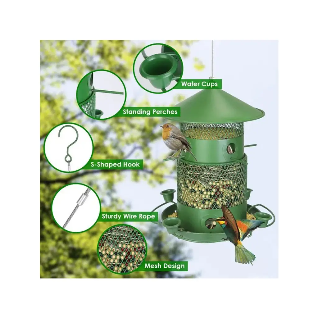 Wild Bird Feeder, Squirrel-proof Chew-proof Metal Bird Seed Feeder Outdoor Hanging Bird Feeder With 360¡ã Circular Perches Water Cups For Yard Garden