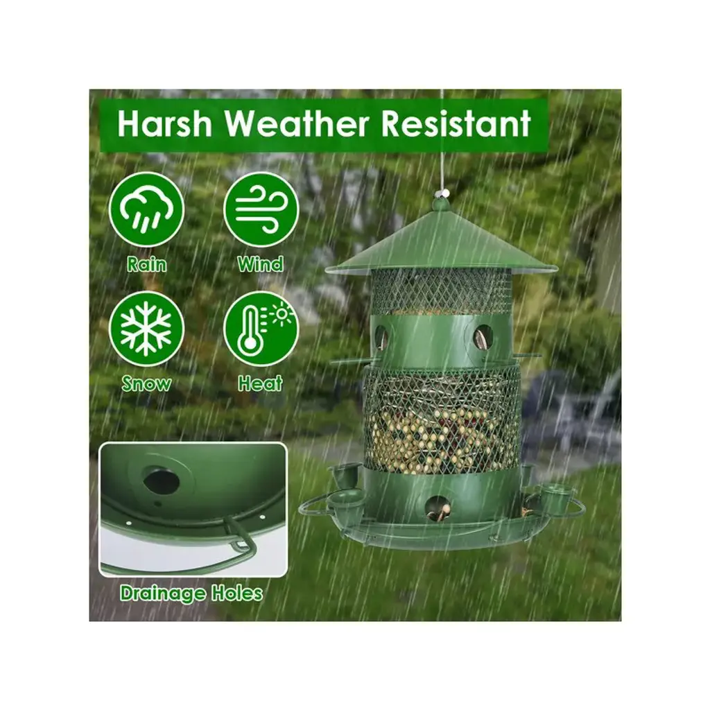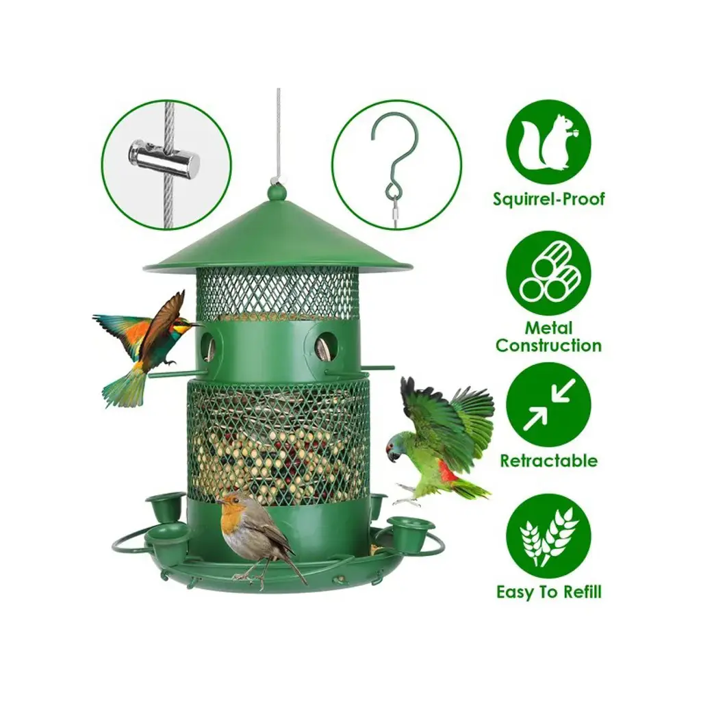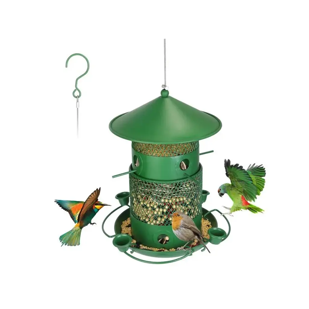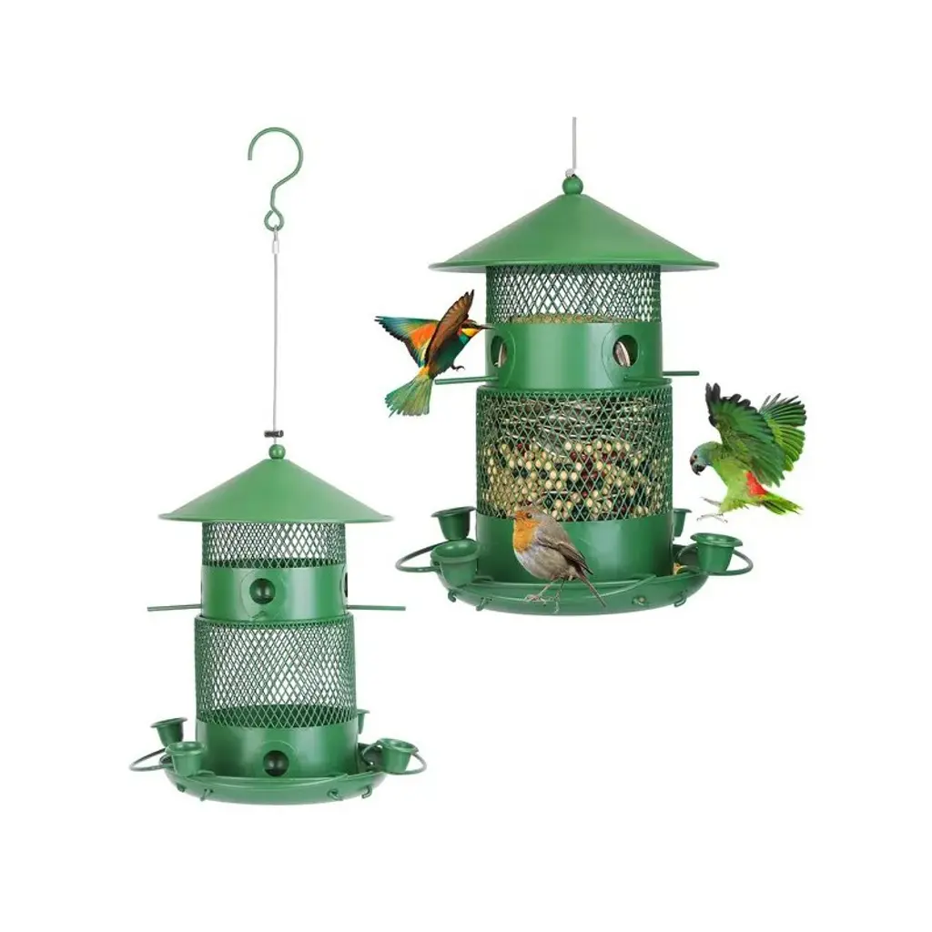 Wild Bird Feeder, Squirrel-proof Chew-proof Metal Bird Seed Feeder Outdoor Hanging Bird Feeder With 360¡ã Circular Perches Water Cups For Yard Garden