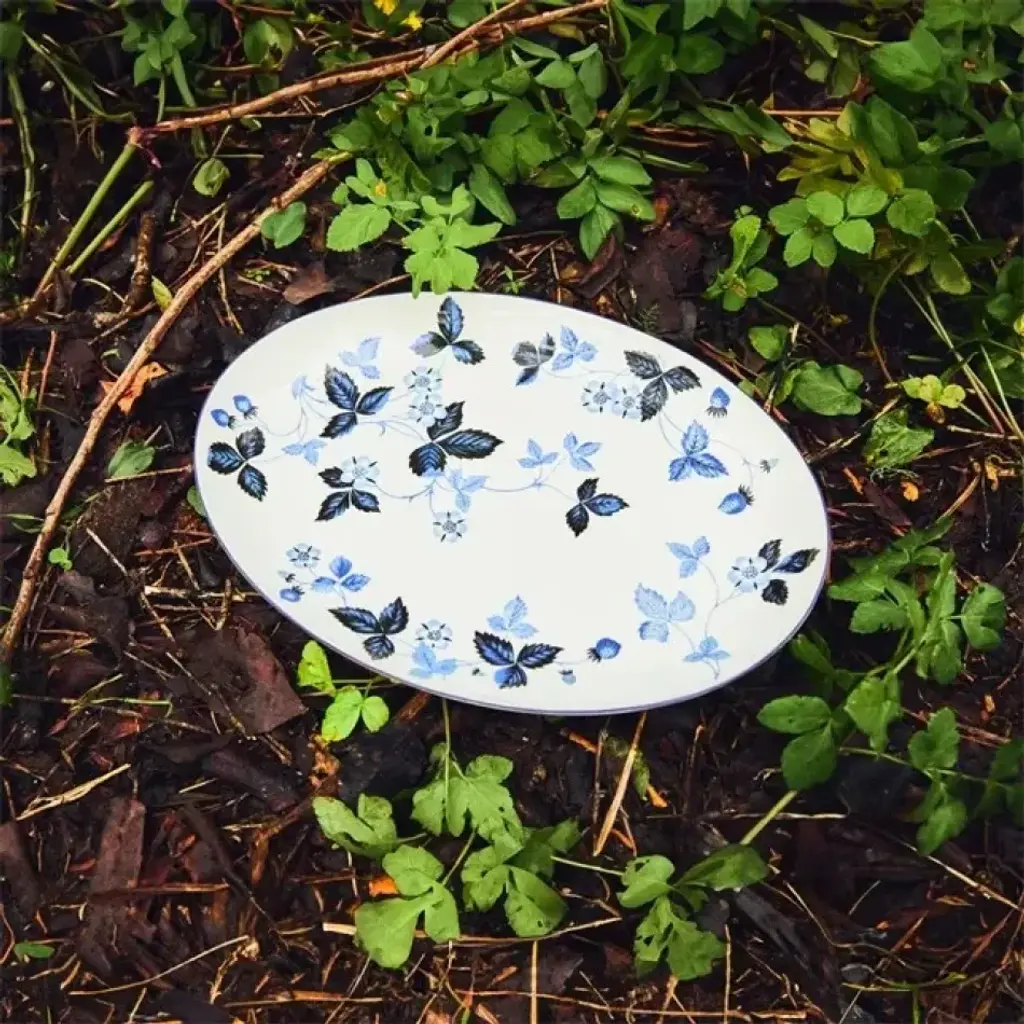 The original Wild Strawberry pattern is reimagined in deep inky blue for a bold contrast against the silky white fine bone china body. The dinnerware is adorned with hand-drawn vines and plump strawberries, creating a stylish modern take on the 1964 pattern.