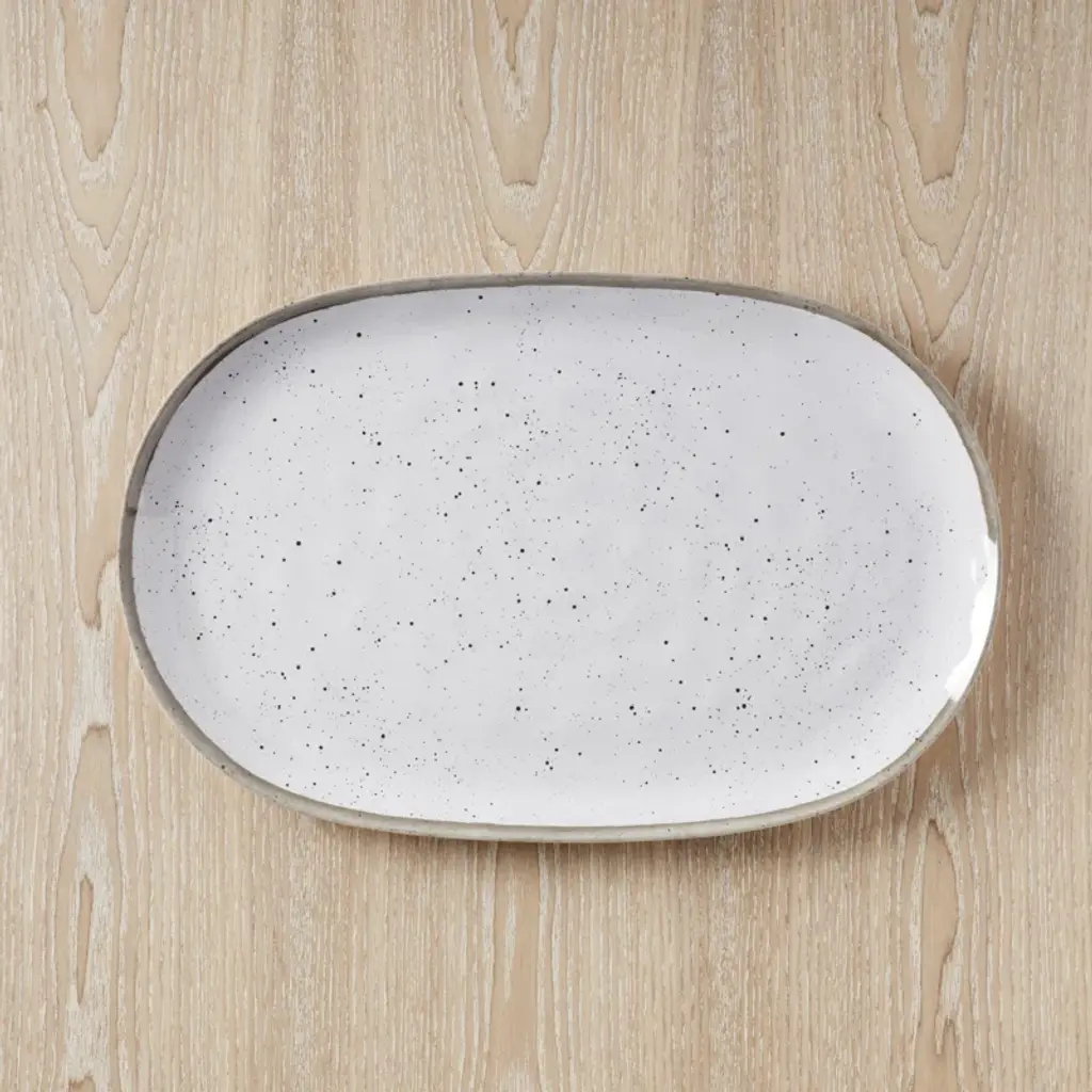 Speckled with flecks of brown reactive glaze, our sand-colored Wilder platter extends a warm welcome to mealtime, whether a sit-down affair or binge-watching snack. Earthy yet stylish, the artisanal stoneware platter is made for us exclusively in Portugal. Showcasing its own unique constellation of speckles and a freeform rim, the oval platter has a modern organic shape that perfectly complements everyday meals or festive holiday gatherings.