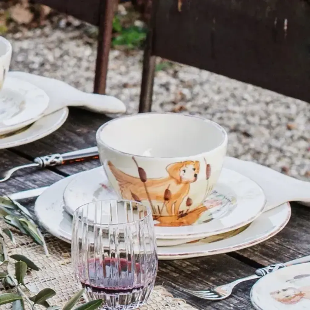 Handpainted in Tuscany and an instant classic for everyday dining, the Wildlife Hunting Dog Cereal Bowl brings the grandeur and beauty of the outdoors to your table with exceptional detail and craftsmanship. Since 1983, Vietri has specialized exclusively in Italian handcrafted ceramics, stainless and pewter flatware, mouth blown glassware, lamps, urns and planters. Families of artisans with 3 or 4 generations of history create these special pieces using centuries-old techniques. The subtle color from a paintbrush and the curving stroke of the artist's hand are never repeated in quite the same way, making each piece truly unique.