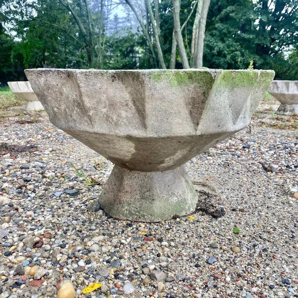 Unique concrete planter by Swiss architect Willy Guhl. Planter in the shape of a chalice. Gorgeous patinas and lichen on these planters. Great vintage condition. 3 available as shown in this listing. Priced individually. Description below matching image numbers to planters. Planter 1: images 2-7Planter 2: images 8-14Planter 3: images 15-20