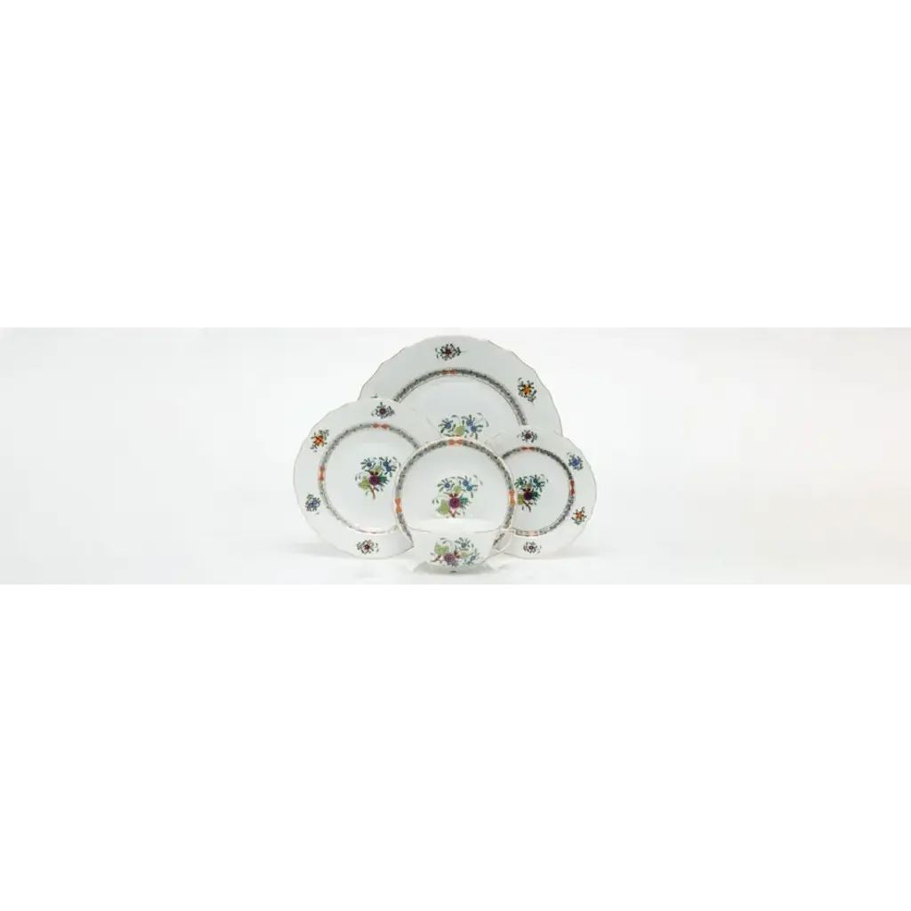 A modified version of the classic Indian Basket pattern, Windsor Garden was designed to mix and match with its predecessor. Hand painted in Hungary. Now the biggest porcelain manufactory in Europe, Herend was founded in 1826 to produce earthenware in the small Hungarian village for which it was named. At the time, Hungary was flooded with low-cost pottery, but in 1839, Mor Fischer became the Manufactory’s new owner and he decided to focus on producing dinnerware replacement pieces for Europe’s royal families to complement their valuable porcelain patterns from Germany and the Far East. As his client base grew, Fischer commissioned his artists to begin designing dinnerware patterns of their own. Queen Victoria’s 1851 purchase of a large set for Windsor Castle was a milestone, setting the stage for aristocrats throughout Europe to clamor for Herend in their estates. In the 1850s, Herend added meticulously-crafted figurines to its creations. Herend’s trademark fishnet pattern, which is widely recognized and prized as Herend’s signature design, started in 1858 when an artist who was intrigued with a Chinese plate’s fish scale design painted it onto a rooster figurine to imitate feathers.