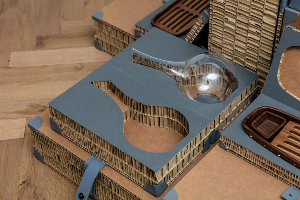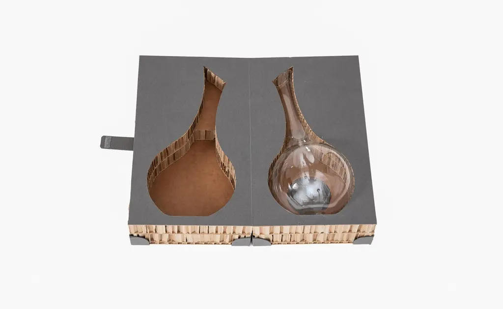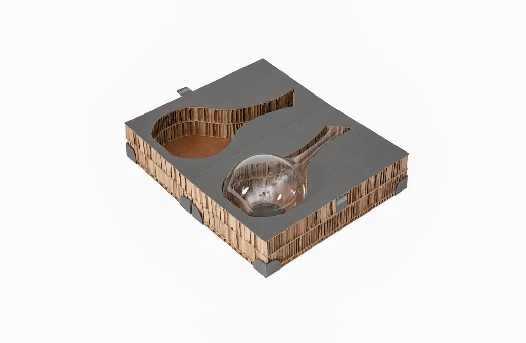 The wine decanter is an organically shaped hand-blown borosilicate glass carafe. The Pok collection celebrates the artistry of hand-crafted beadwork made by the Pokot women in Northwest Kenya. Influenced by the hand-carved African gourd fruit vessels used in the Pokot community, Shiro Muchiri, the designer, combines their artistic cultural heritage with contemporary design in creating this elegant decanter. The borosilicate glass makes this carafe light and resilient, an elegant serving piece to complement any bar, buffet, or table.Dimensions: Ø 17cm H 35cm (1.5L).