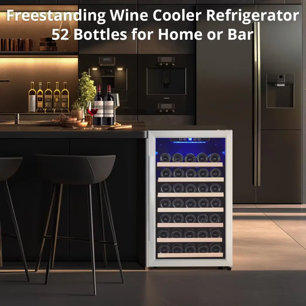 Wine Fridge Cabinet 52 Bottle, Wine Cooler Refrigerator With Glass Door, Beverage Wine Chiller With Digital Touch Screen