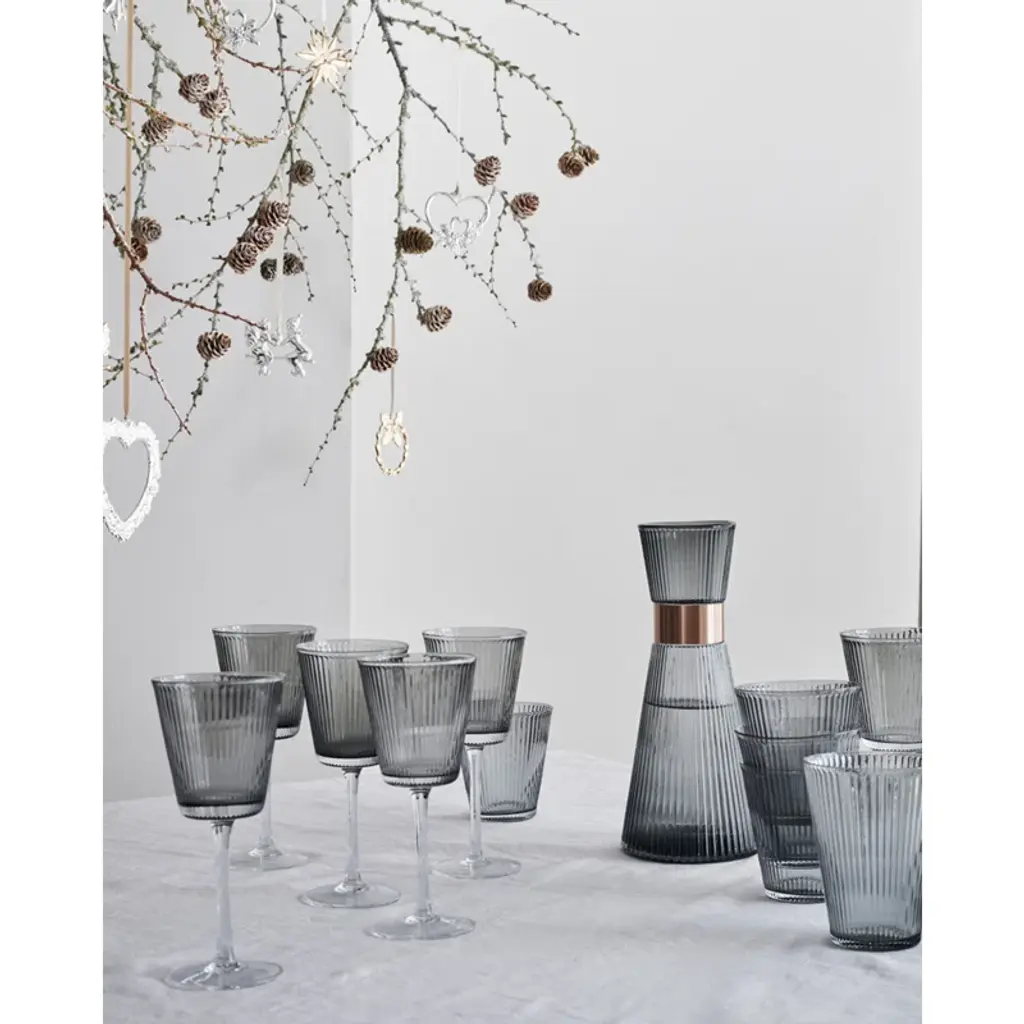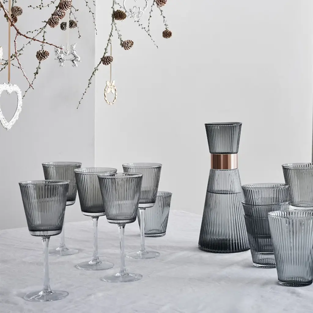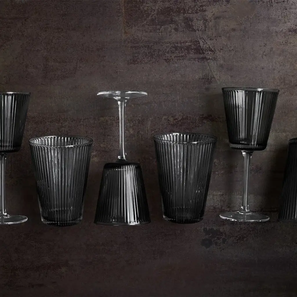 Take the table setting up a notch by focusing on simple living and functional elegance in the classic silhouette. With the Grand Cru Nouveau wine glass in beautifully mouth-blown, high-quality glass in an elegant dark gray smoke color, you get a fresh and minimalist interpretation of a wine glass, which aesthetically and innovatively accentuates the Grand Cru design using current trends in style, structure and color. The Grand Cru Nouveau wine glass measures 18 cm in height and effortlessly balances aesthetics with function. The wine glass has quite simply been created by reducing the stylish Grand Cru Nouveau water glass slightly, and placing it on a stem. The multi-functional size of the wine glass pays tribute to the series' 'one size fits all' approach to modern glass design for a busy yet stylish lifestyle. Use it for both white and red wine – drinks, or a small spritz. Yes, any aperitif or non-alcoholic refreshment that is paired with the smoked glass, will enhance the optics of the innovative Grand Cru design and accentuate the series' distinctive everyday luxury-feel and functional elegance.